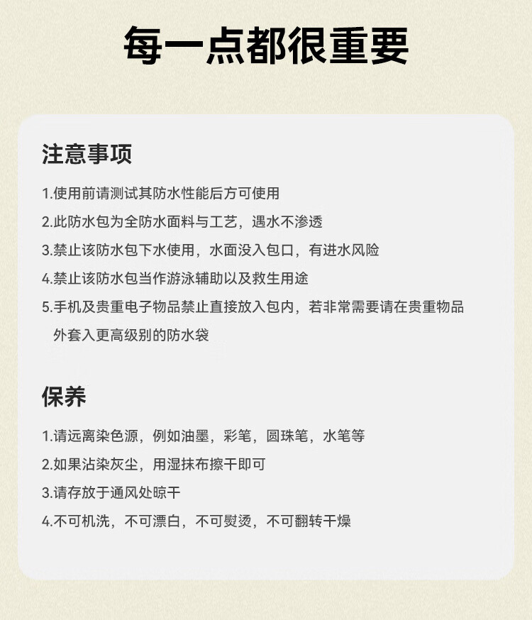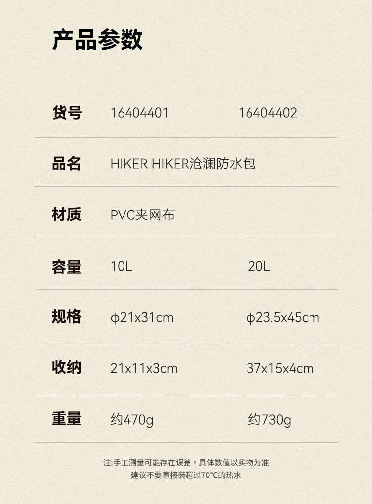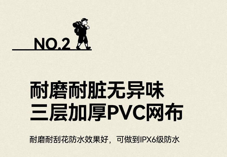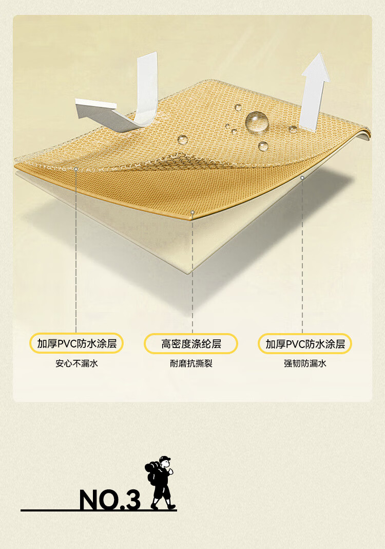 去漂流赶紧买的,本来想买该品牌的另外一个型号,但看这个材质写了两层的就买了这个,价格贵很多,收到货了发现说明上面也写的一层,感觉有点上当了。新的刺鼻的味道很大,感觉不是好的网布,味道不知道多久能消除。做工整体一般,特别是缝线的针脚真心不行。这也算是国内比较好的品牌,现在感觉也不行了,以前买的冲锋衣什么的质量都还行现在感觉一般。不知道这个做工会不会漏水