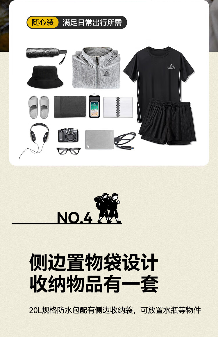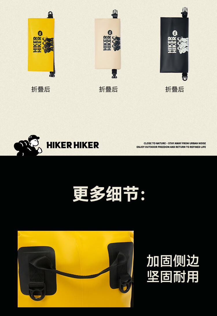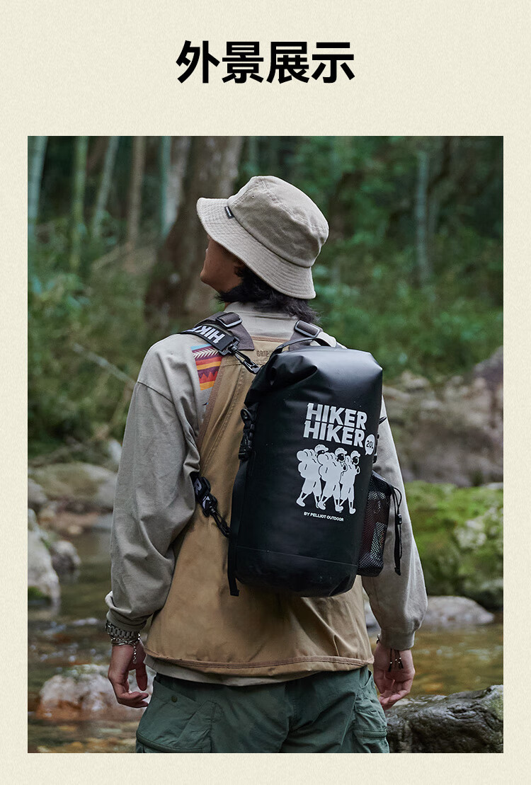 背包很大,装三个人的东西足够,然后旁边有个收纳袋装水非常的方便,防水性能也很好,价格也很实惠,值得购买