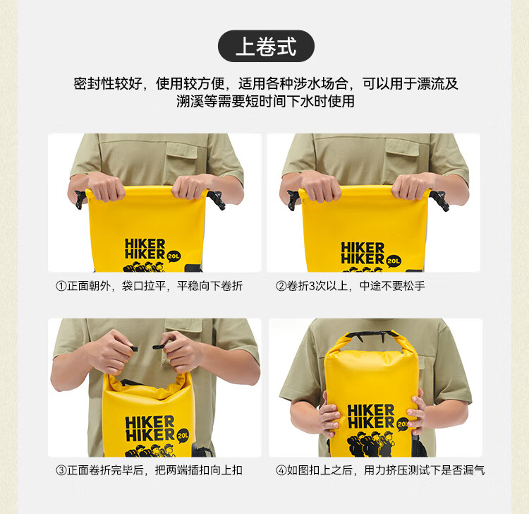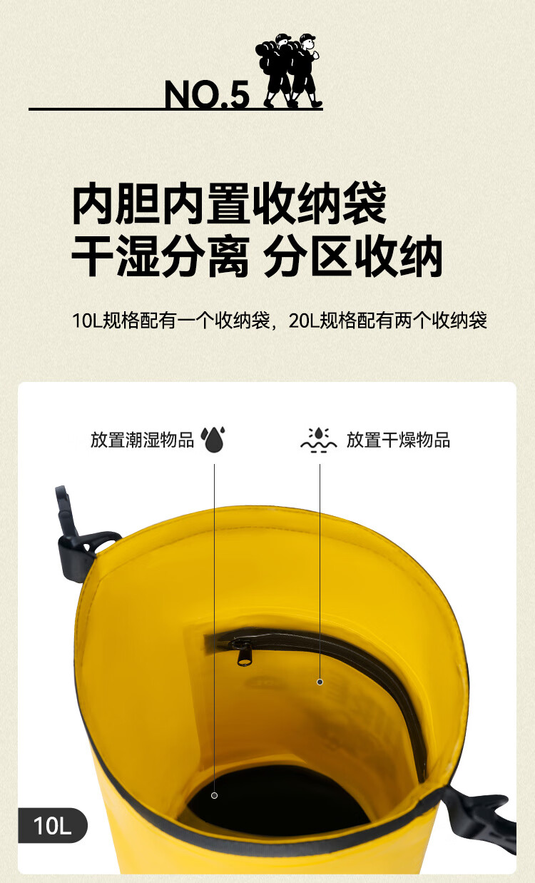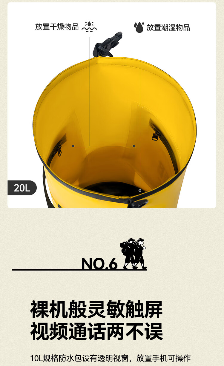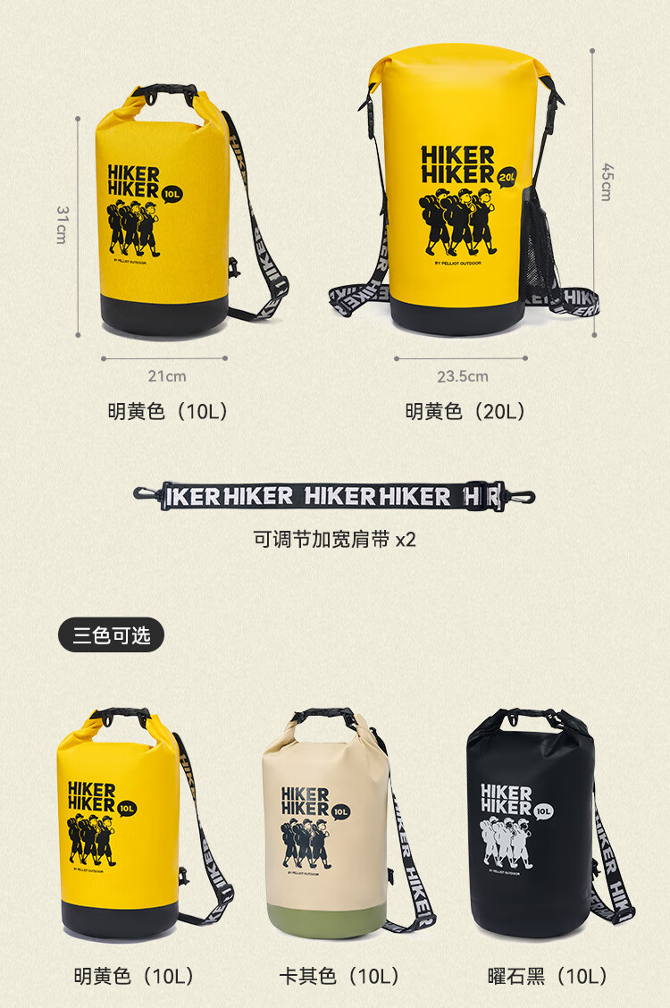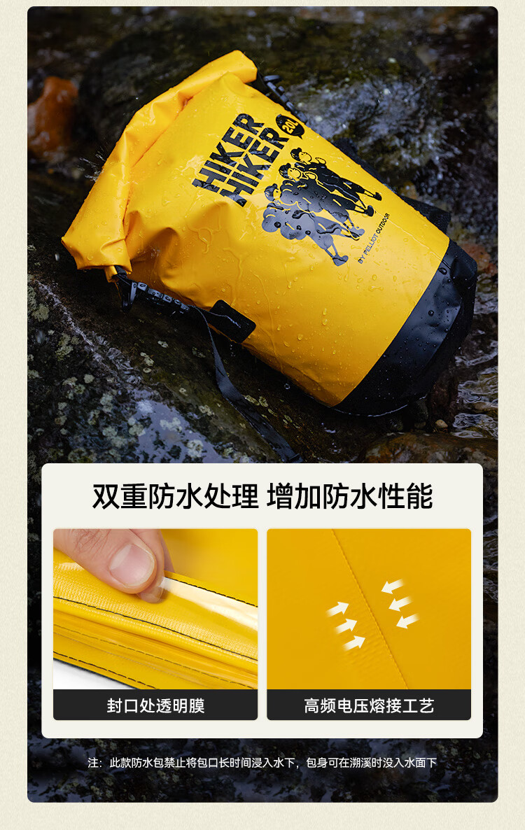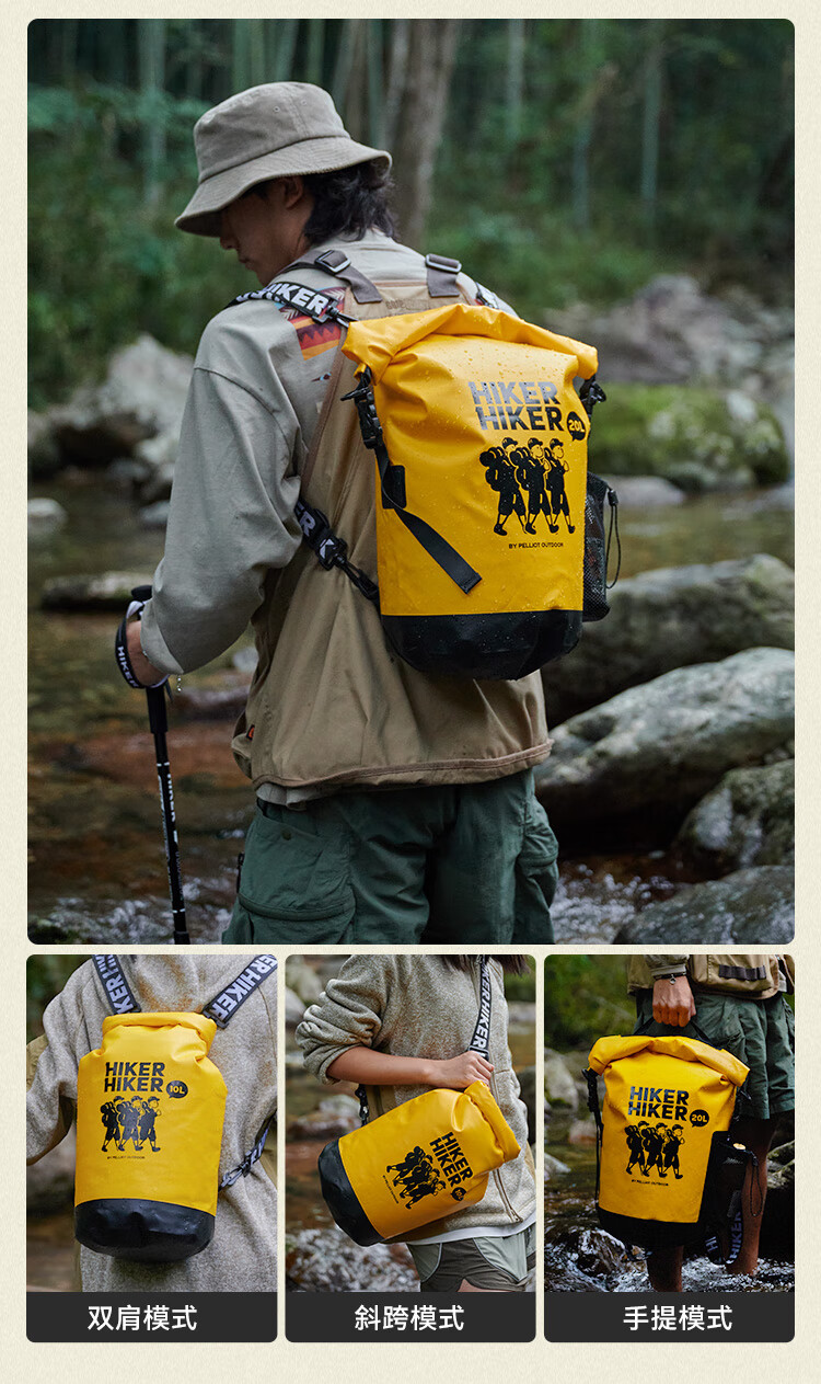 伯希和(Pelliot)户外露营单肩背溯溪包防水沙滩收纳旅行斜挎水袋16404401明黄10L