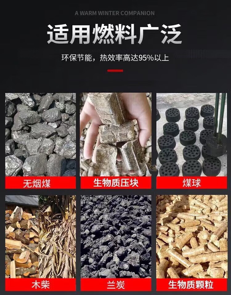 昊燃 室内烤火炉柴煤两用回风炉农村取暖器家用煤炭烧柴不锈钢炉子 A款柴煤烤火炉90*90*64(高)