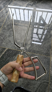 火钳用料十足,不锈钢的,直径较粗,握把是木头的,握感很好,而且颜值也很高,很适合烧烤的时候添柴,掏火使用,整体的尺寸也还行,收纳不会占很大空间,比较方便,夹口闭合性也不错,品控不错。