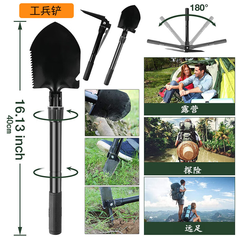 户外兵工铲套装野营装备【锯本挖土防身】露营折叠铲多功能兵工铲 SD10-39B套装