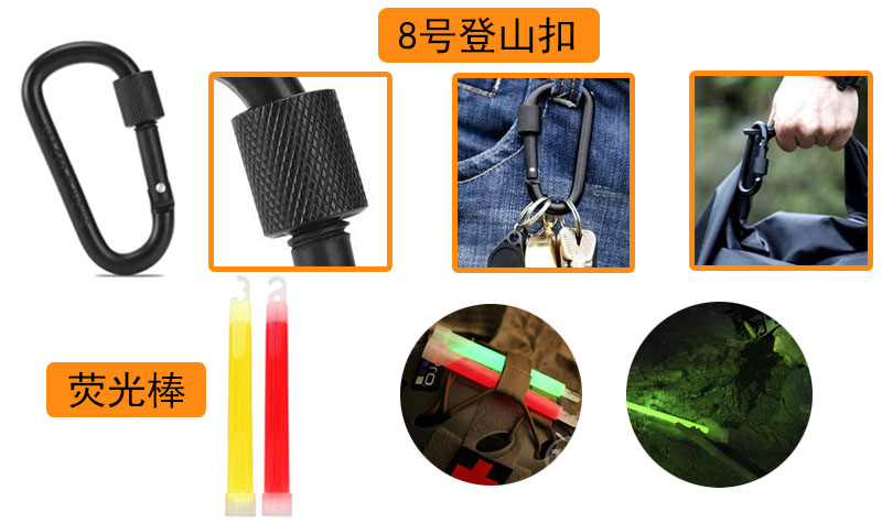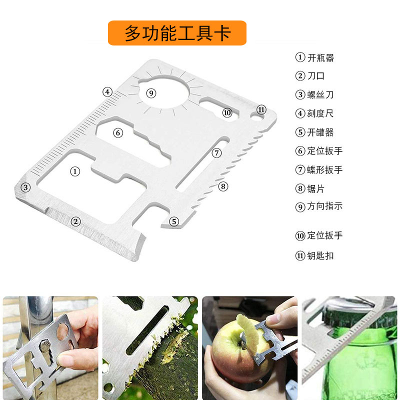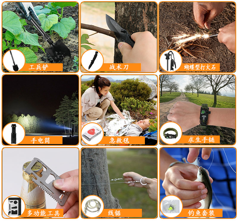 好齐全的户外生存工具包,自己想到的没想到的都备齐全了。不一一列举了,反正体积小、功能全,有了它,在户外遇到意外情况,自救装备基本齐全了。送货速度也很快。