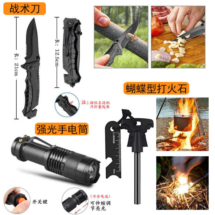 凰一 野外生存包装备户外用品野营防身求生工具套装战术笔刀打火石