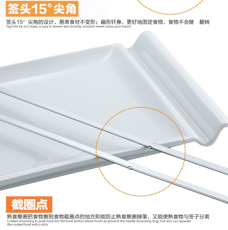 油边签商用大号木柄不锈钢烧烤签扁签子羊肉串烤肉串工具扁签烧烤 油边烤签宽7mm长40CM*10支