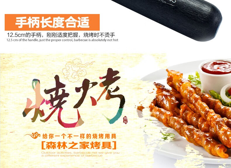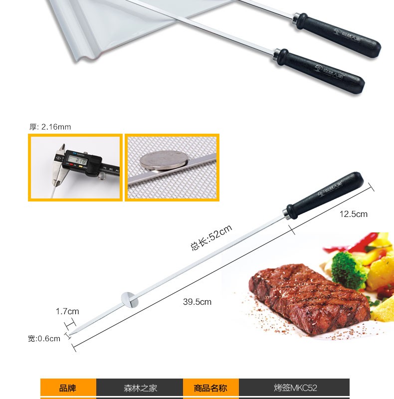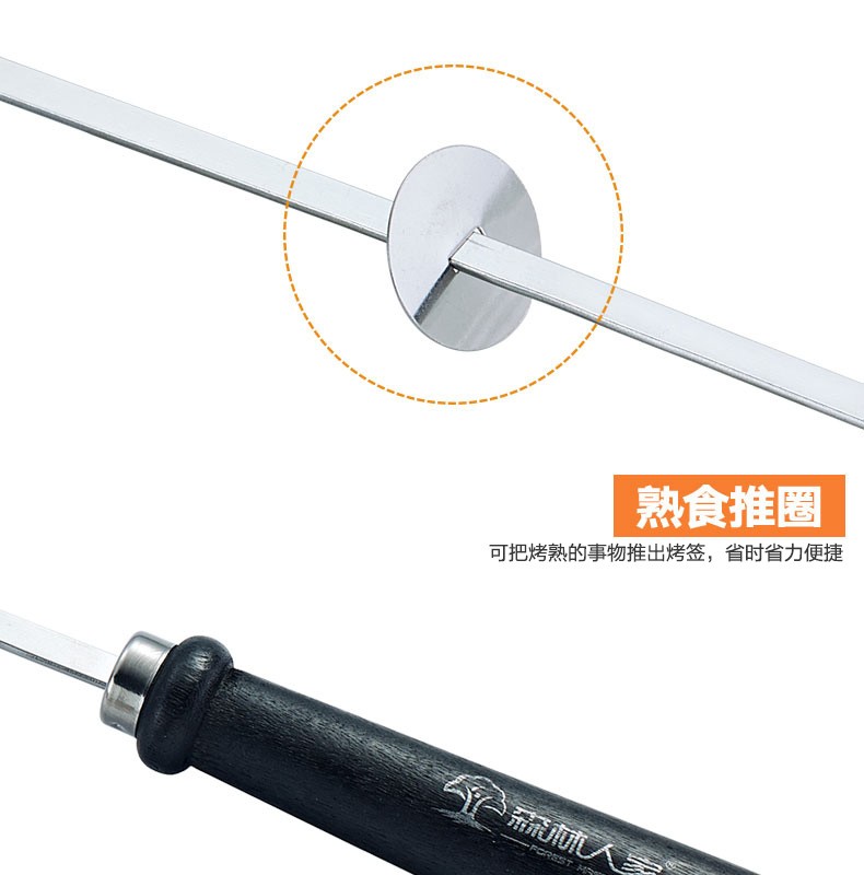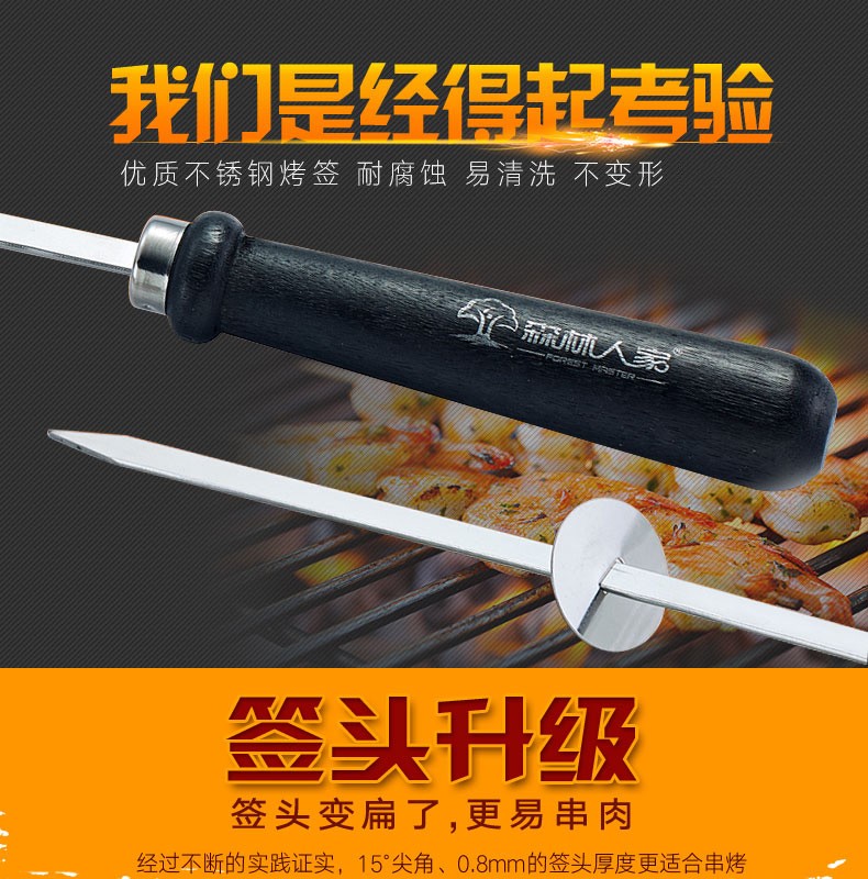 森林人家烧烤签52cm10支装 不锈钢烤针 木柄防烫烤肉签子 烧烤用具