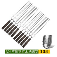 凰一 户外烧烤304不锈钢烧烤签子烧烤针烤叉木柄签烤肉签家庭BBQ野外 304不锈钢红柄U形叉10根