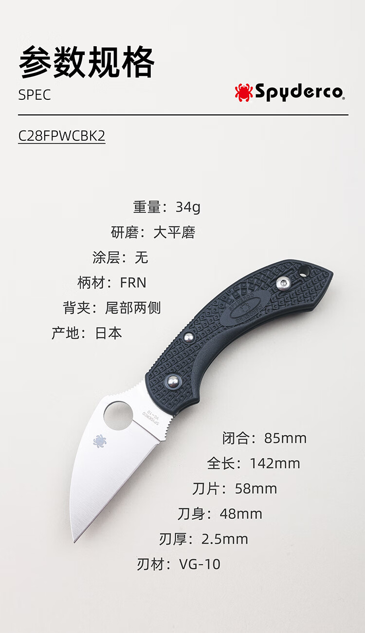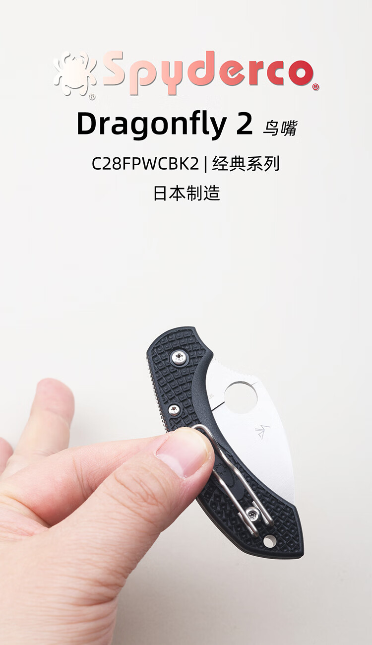 SPYDERCO美国蜘蛛C28FPWCBK2蜻蜓Dragonfly便携户外折刀鸟嘴VG-10 C28FPWCBK2 60°以下 85mm 4.8cm