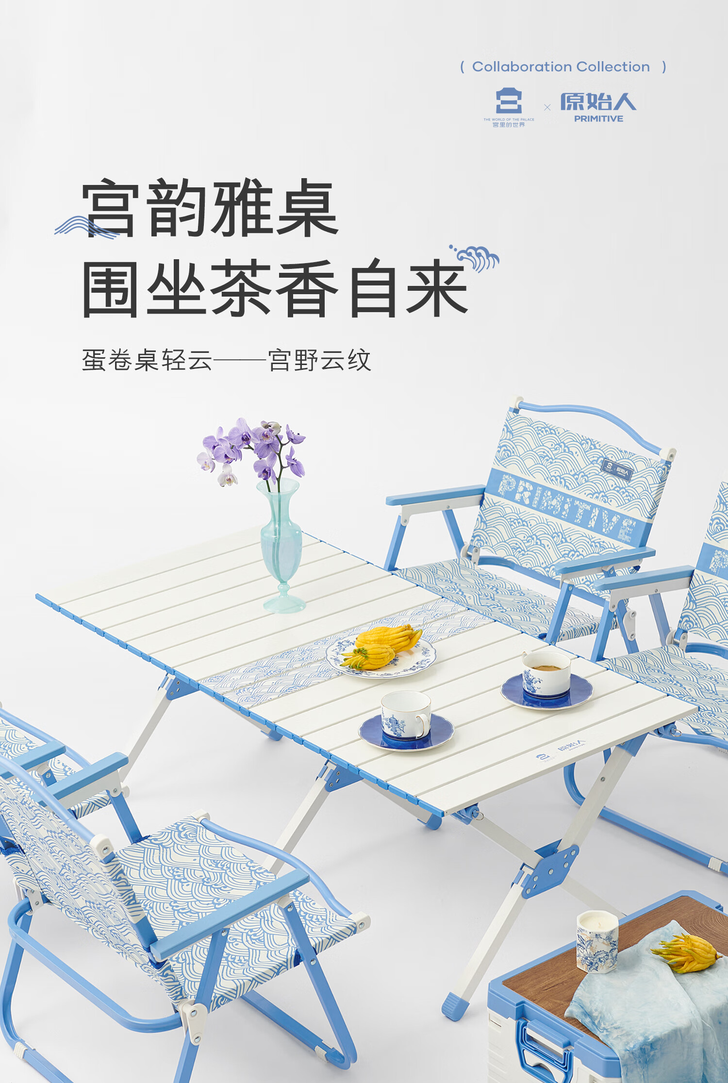 原始人(The Primitive)露营桌椅蛋卷桌户外折叠桌子便携式野餐套装野营野炊折叠装备全套 120款宫野云纹-故宫系列 精美宫韵