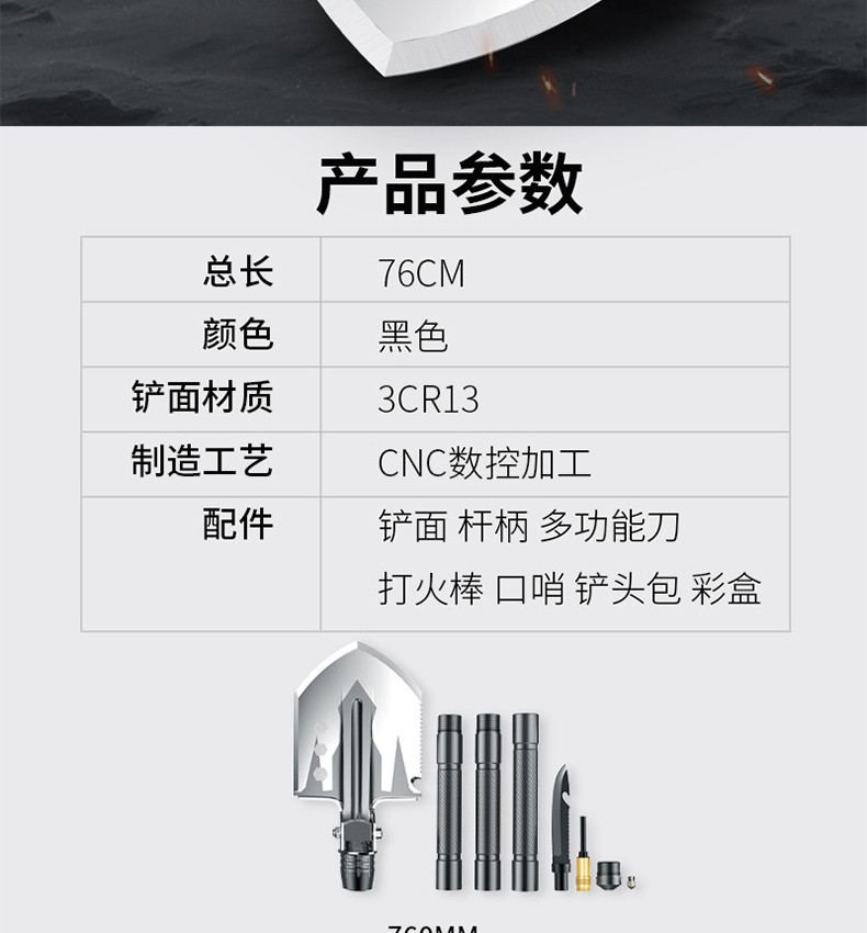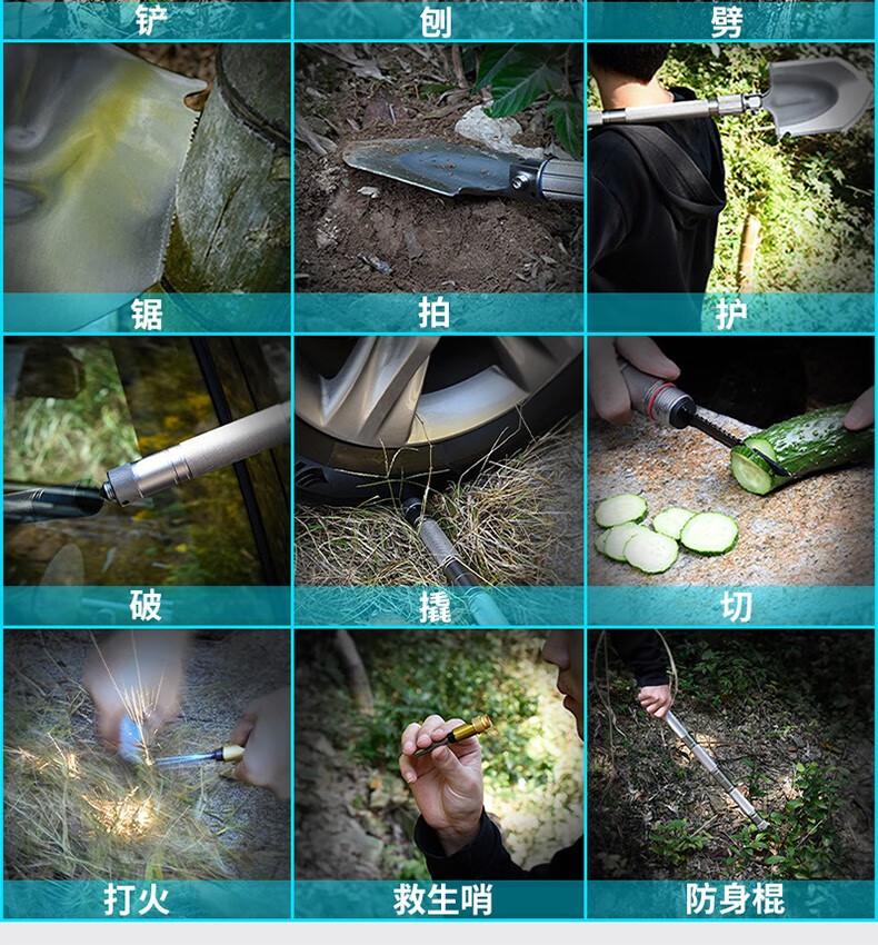 迈尔沃钓鱼车载多功能工兵铲套装兵工铲子锰钢户外露营加厚折叠铁锹斧子 多功能铲 + 战斧+军镐+手电