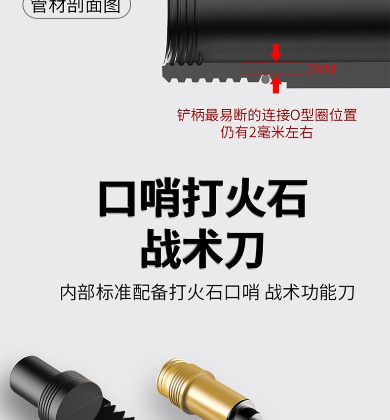 专业级折叠多功能兵工铲碳钢铁锹野外求生战术防身多用途大号铲 加长三节+铲包