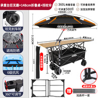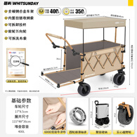 疆屿户外露营车折叠小推车旅行营地野营野餐摆摊儿童可躺野餐聚拢车 卡其【聚拢越野款】+推杆+遮阳棚