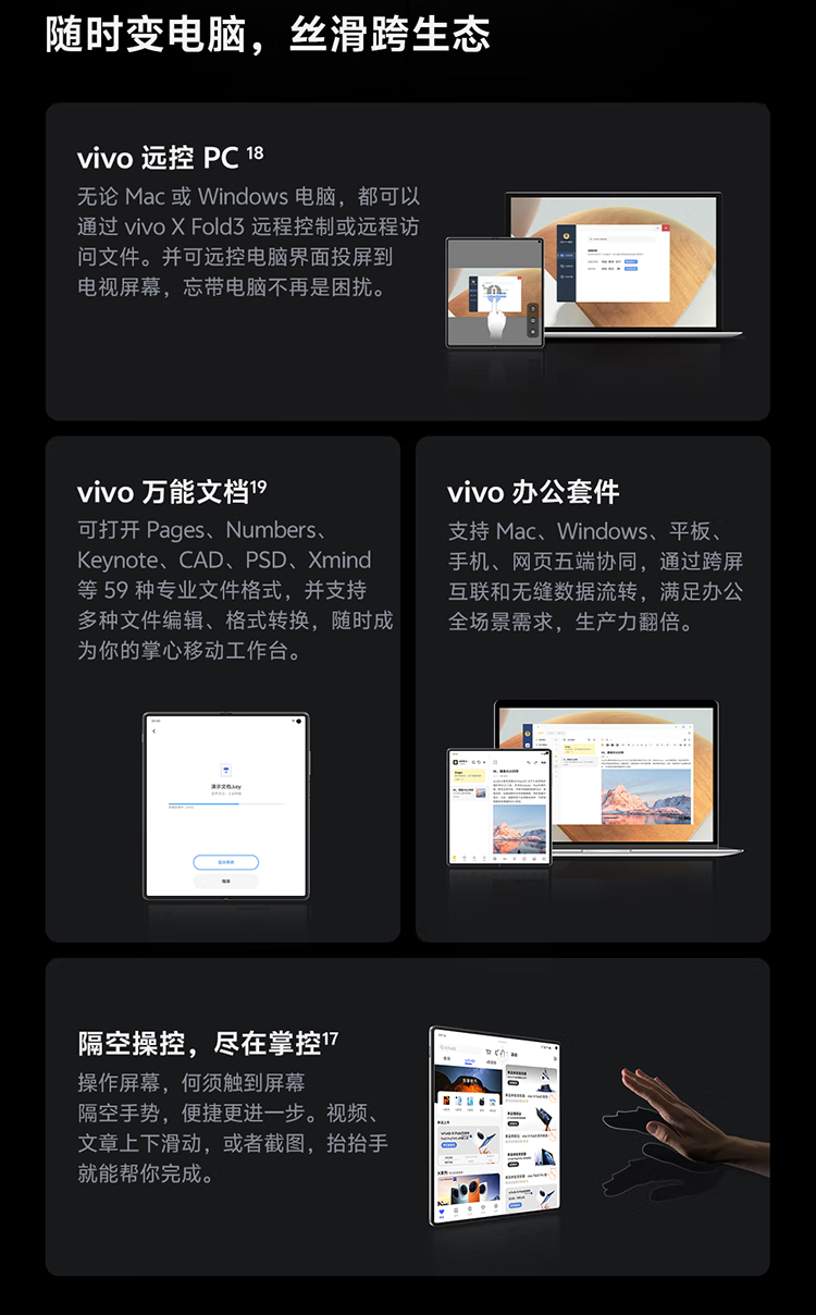 vivoX Fold3 Pro折叠屏影像旗舰手机 薄翼黑 环保版无充电器12GB+256GB