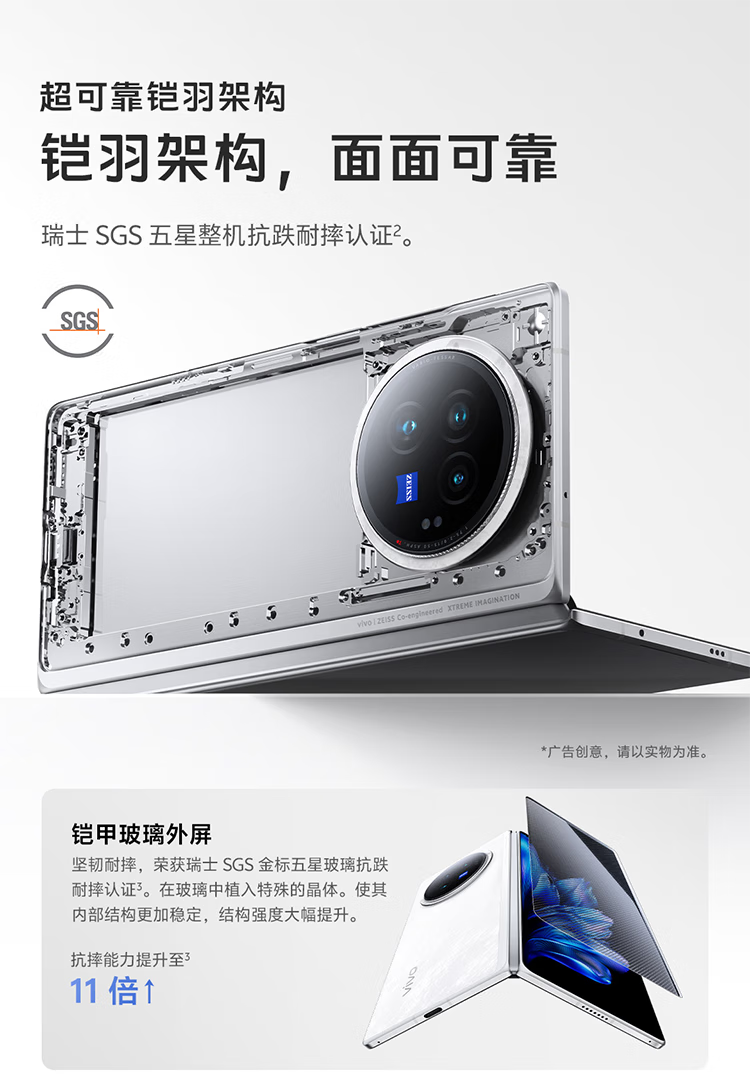 vivo展机XFold5折叠屏手机超轻薄机身XFold3Pro超巨幕折叠屏手机 Fold3【轻羽白】 16GB+512GB 赠运费险|详情咨询客服