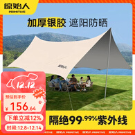 原始人天幕帐篷户外大号专业防晒银胶涂层沙滩遮阳棚露营装备 (22平方)奶油咖【2-12人】