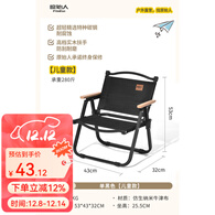 原始人(The Primitive)克米特椅午休带靠背便携躺椅阳台靠椅办公室午睡户外折叠椅露营 黑色【儿童款】加粗磨砂黑支架