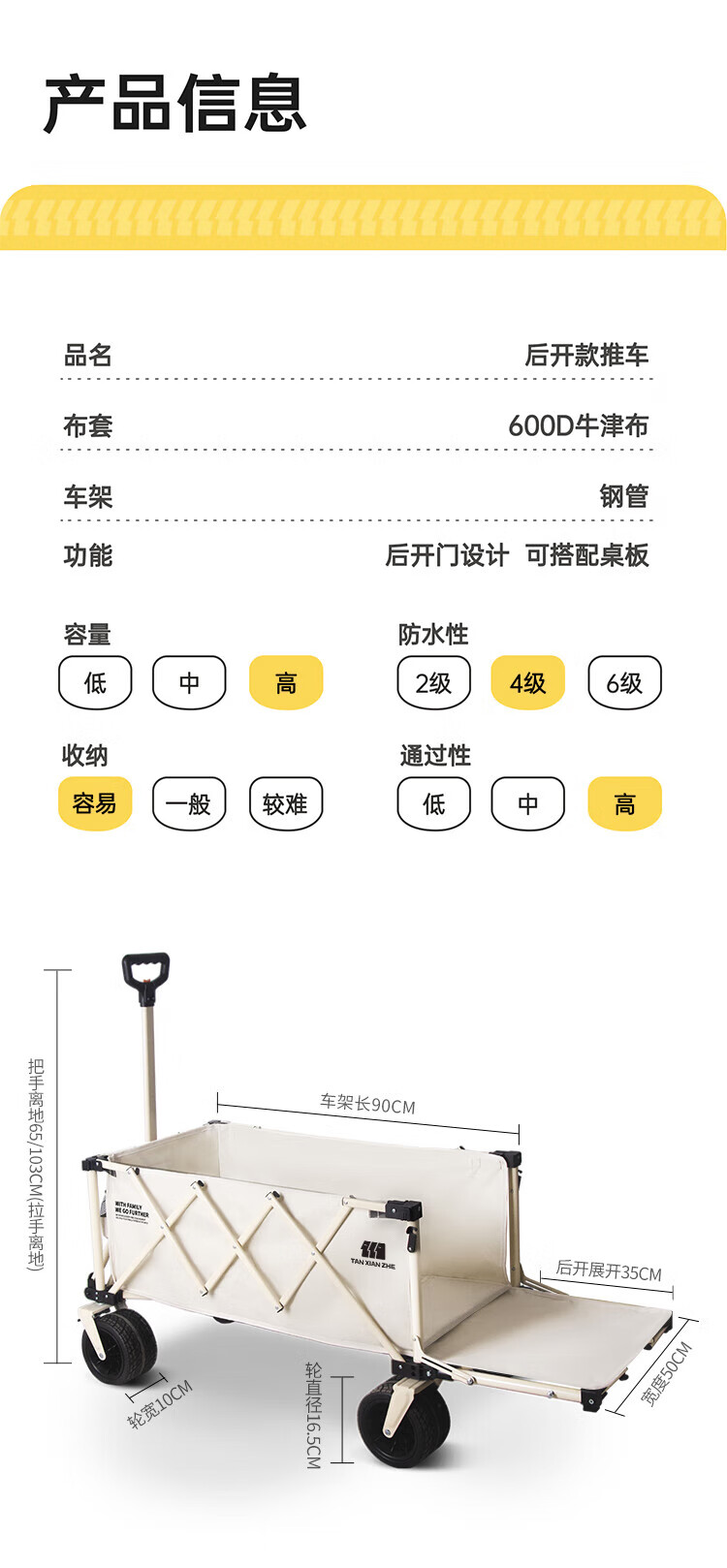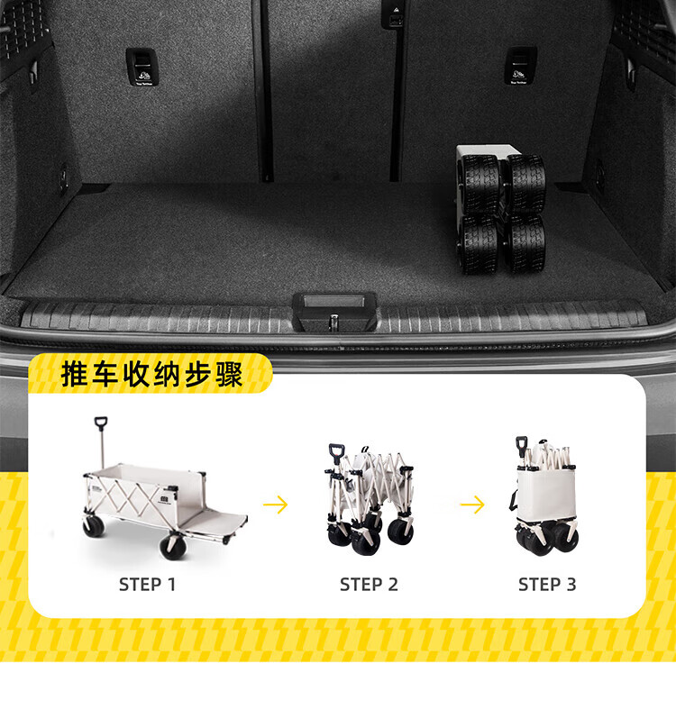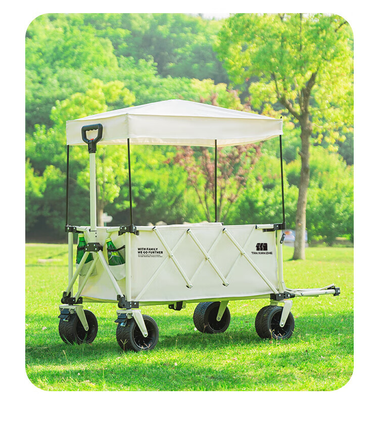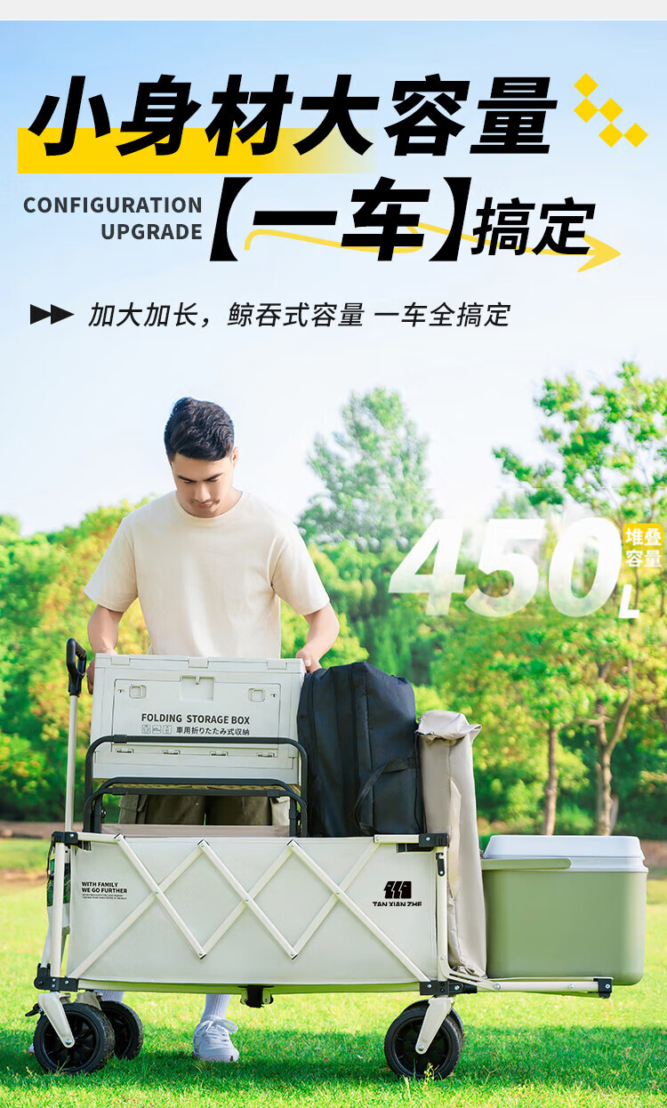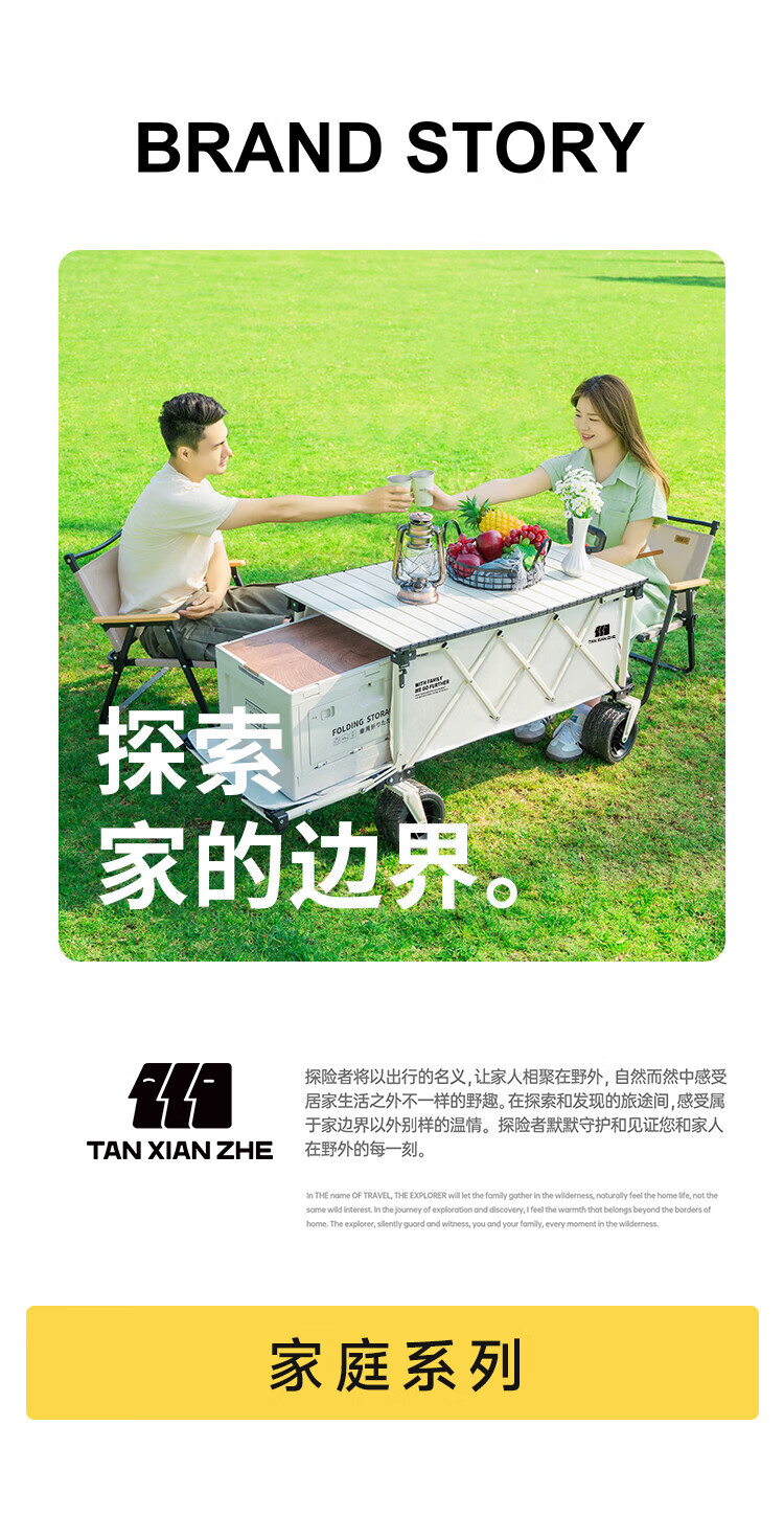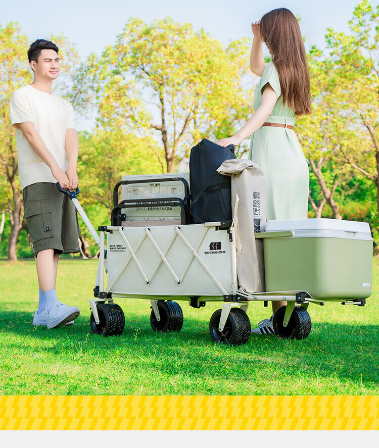 探险者(TAN XIAN ZHE)露营车坦克轮带桌板露营车户外折叠特大号快递车小拖车野餐拉车 350L 曜石黑后开坦克轮+桌板