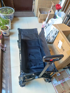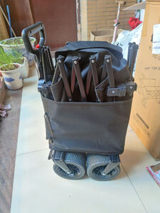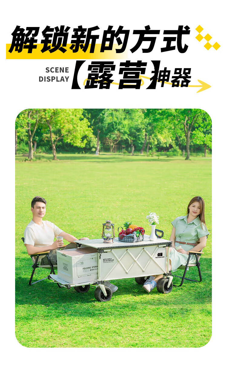 推车拿回来后安装很方便很,收纳也很便捷,展开的尺寸足够大,忘记保留照片😜,收纳起来刚好放在桌子下面不占位置,轮子也是加大加厚的。变向也很方便。4把椅子,质量很不错,扎实耐用,家人很喜欢,期待出去露营