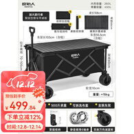 原始人露营车折叠推车旅行小推车户外营地车摆摊野餐车聚拢型快递车 260L 曜黑【越野超大款】+桌板