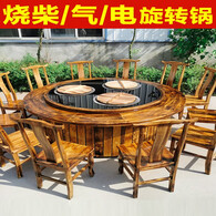 仕夕烁 旋转式铁锅炖灶台桌地锅鸡灶饭店柴火鸡台大锅台烧柴烧气灶双锅 旋转2锅1.6米桌面 烧气