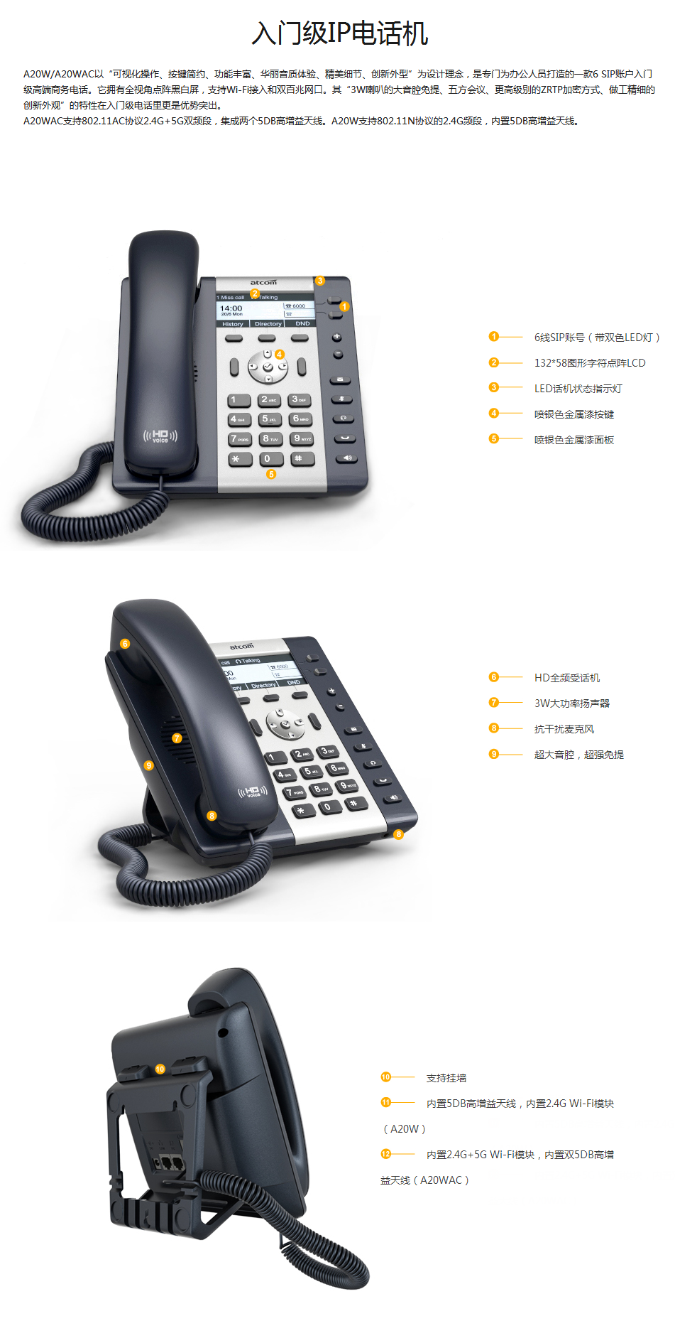 Atcom/简能 局域网IP电话机 2.4G与5G WiFi无线无绳办公ip桌面SIP座机固定电话机 简能话机通用手柄