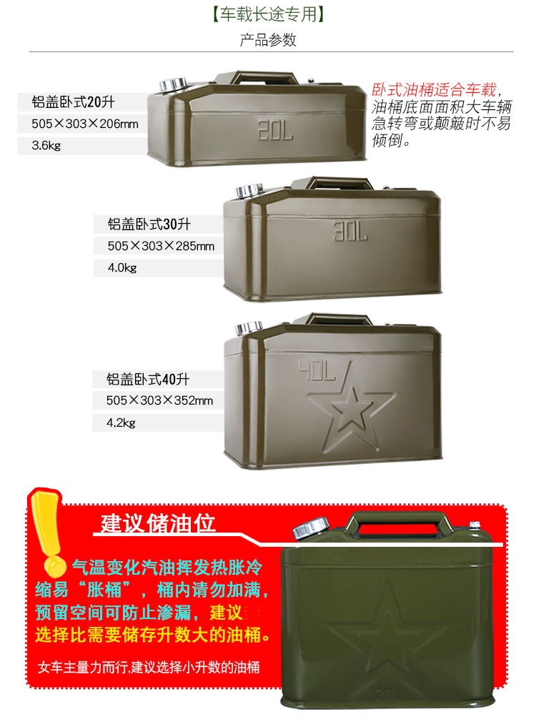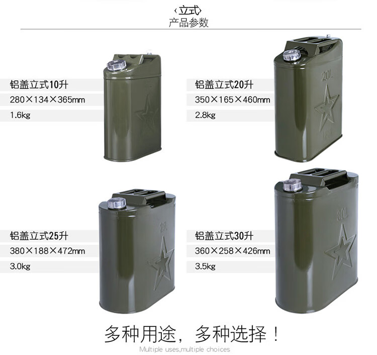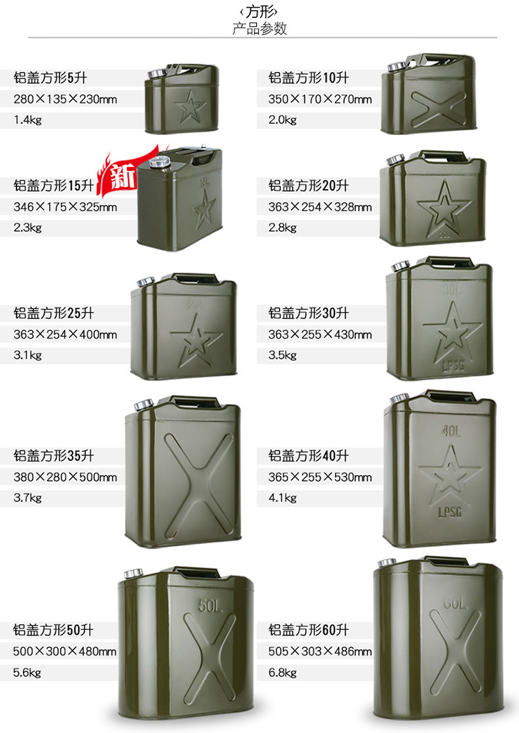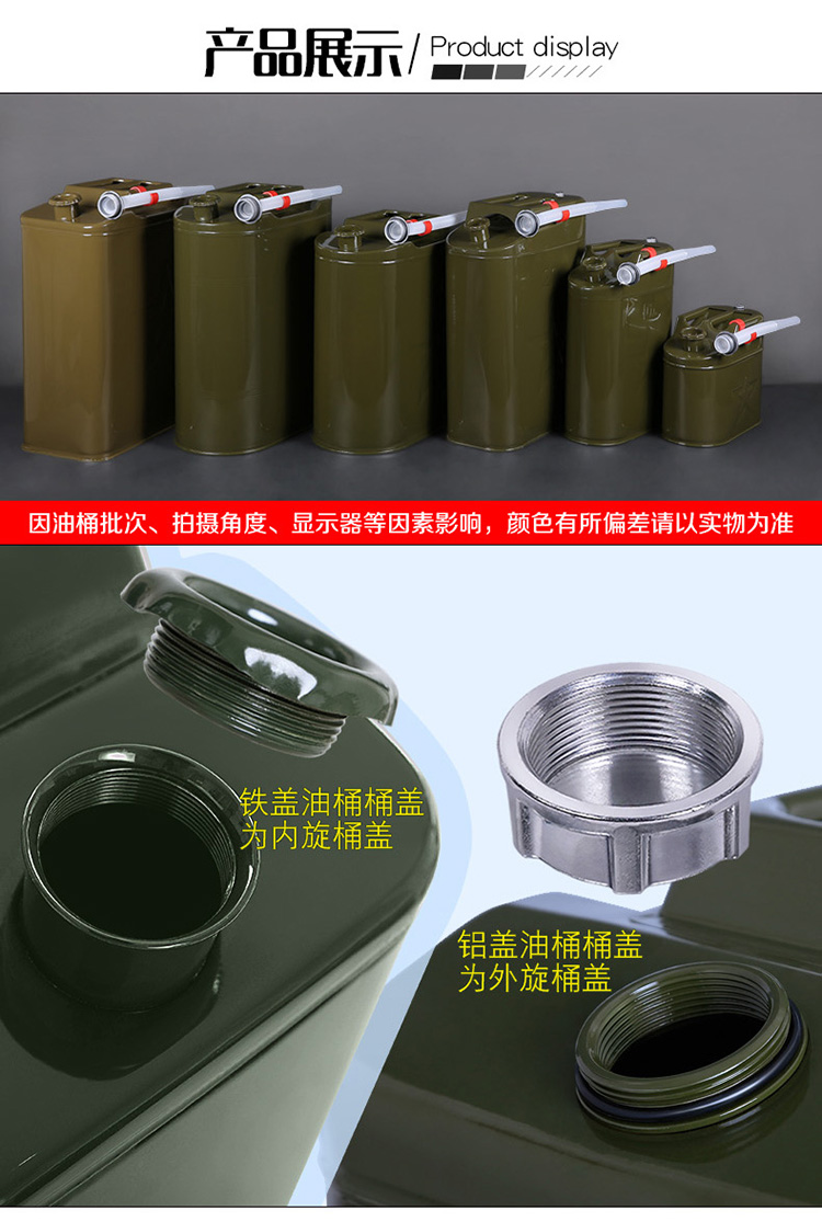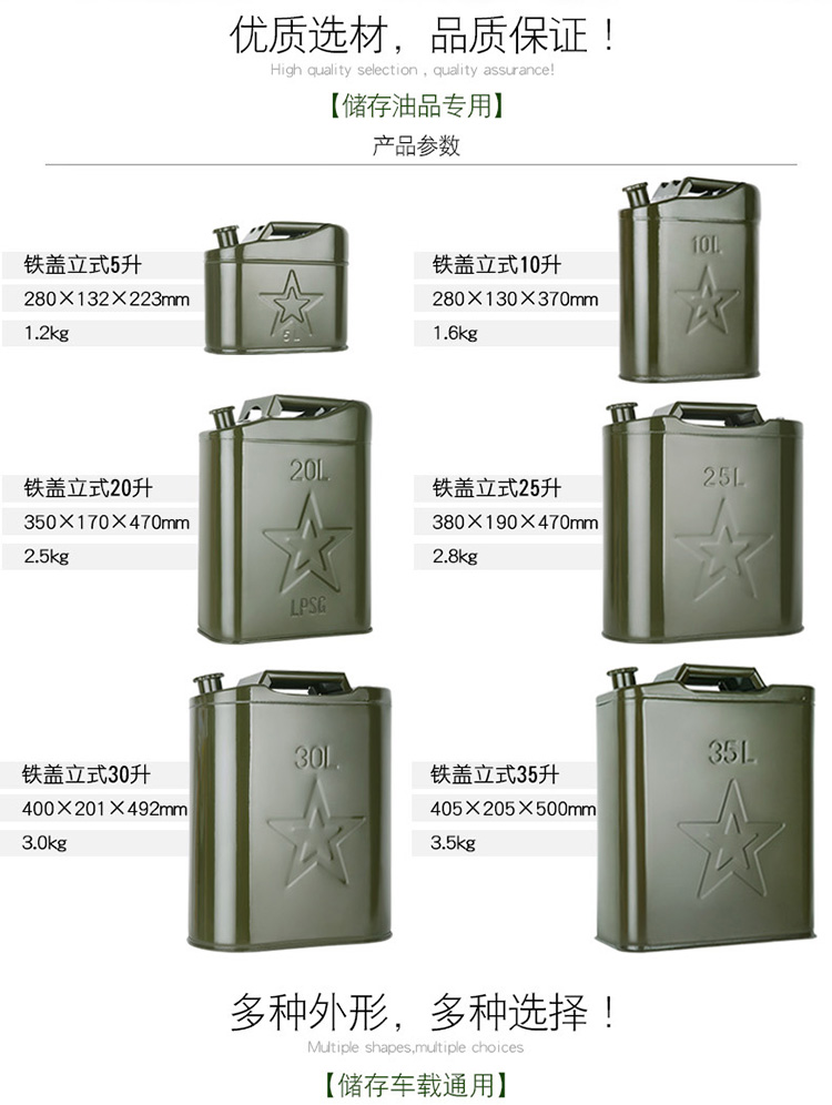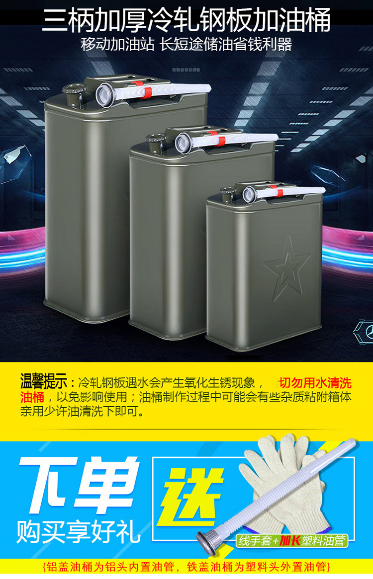 绿简堂加厚汽油桶多规格大容量柴油壶铁油桶加油气油桶装油桶油箱 5L铁盖立式+油管