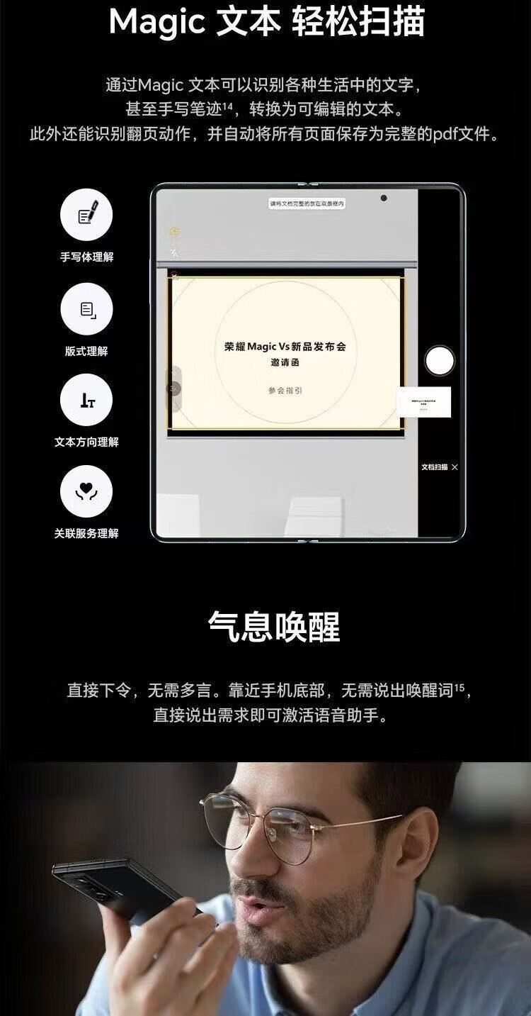 荣耀展机 Magic Vs3 大折叠屏轻薄长续航青海湖电池智能手机 绒黑色 12GB+256GB