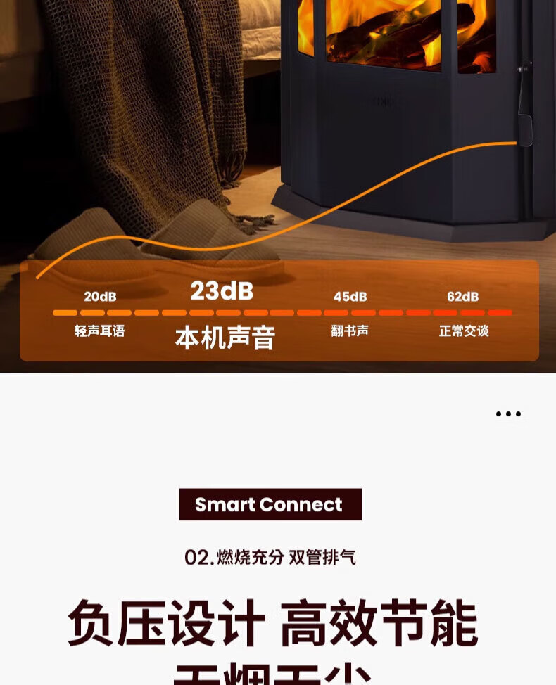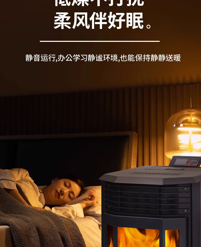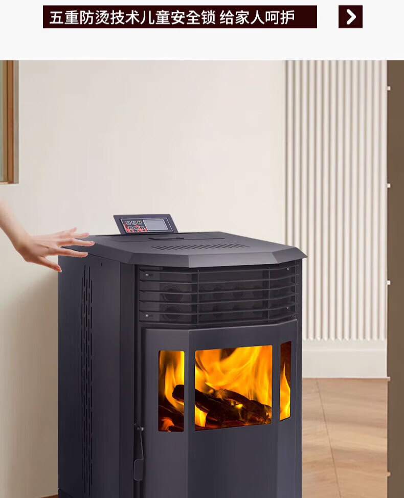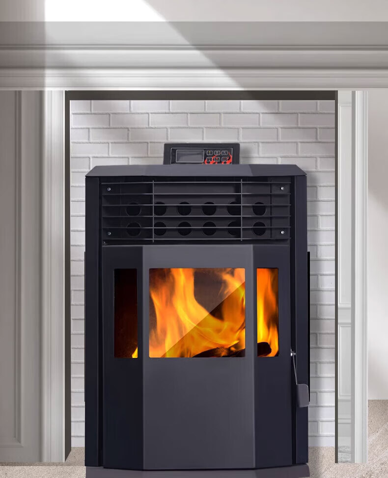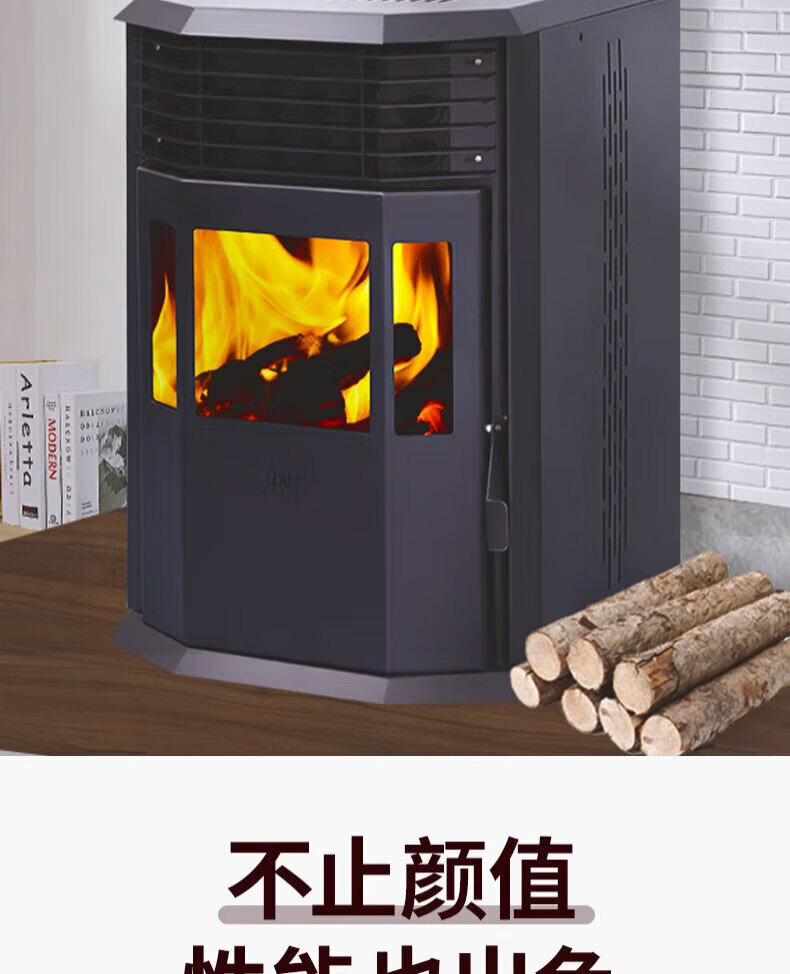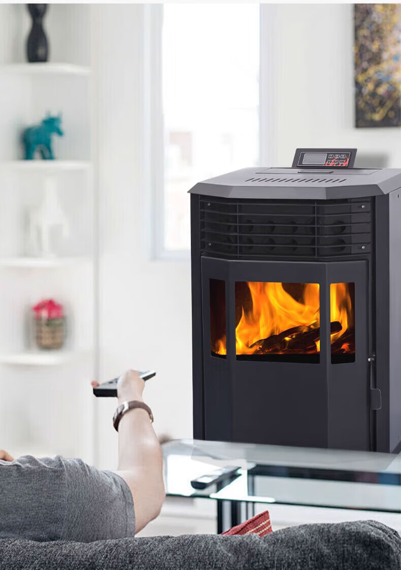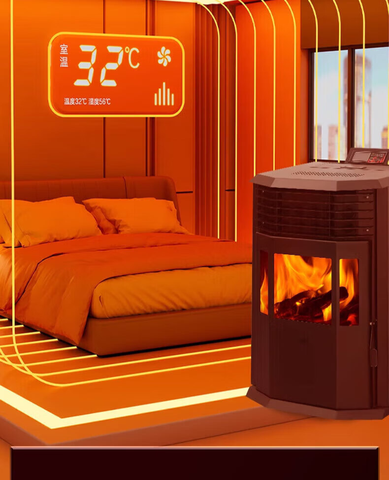 磐玺数控颗粒取暖炉 生物质颗粒取暖炉家用供暖节能环保无烟 智能颗粒炉子 智能互联尊享款P-60型【可烧水】 【木柴颗粒两用、高效取暖】