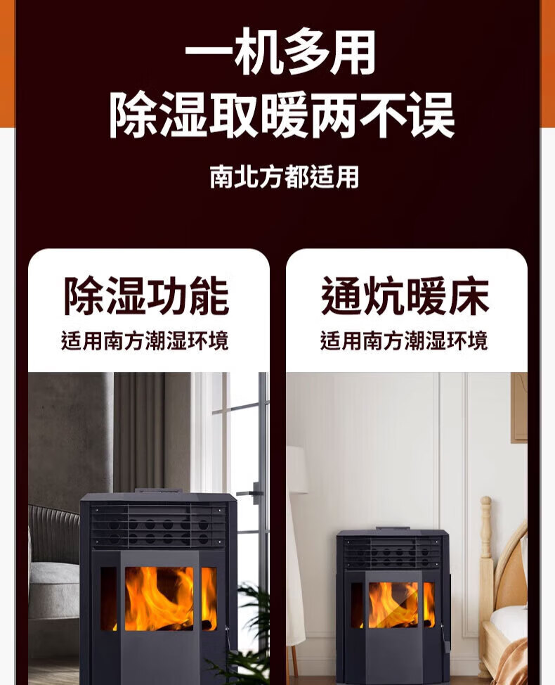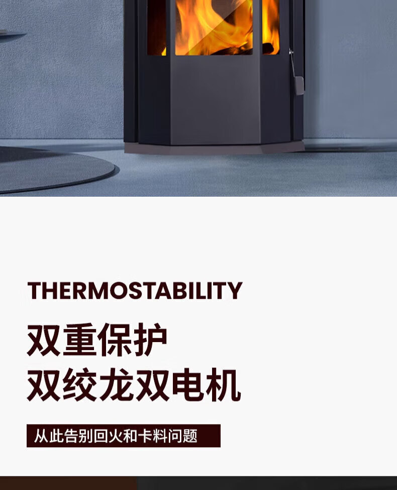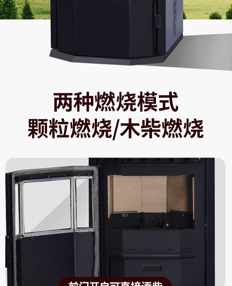丰强鸿新型颗粒取暖炉全自动生物质燃料柴火家用室内供暖环保无烟水暖 【WiFi旗舰+炊事烧烤+颗粒木柴两用】150双绞龙双电机