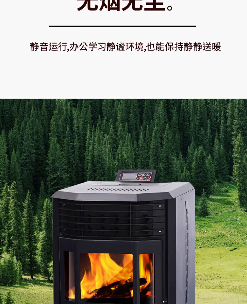 冠时代欧式生物智能颗粒商用全自动环保燃料取暖炉节能家用室无烟取暖炉 100型烧水做饭【远程控制】