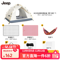 JEEP帐篷户外露营用品装备全自动速开便携折叠野营野外防风雨帐篷 米白帐两门+防潮垫+野餐垫+吊床