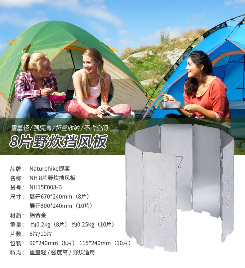NatureHike挪客户外野营折叠屏风 炉具防风挡风板户外 轻便野餐野炊装备 10片挡风板