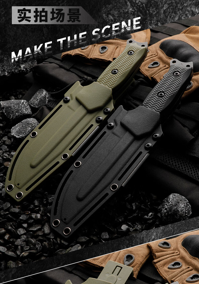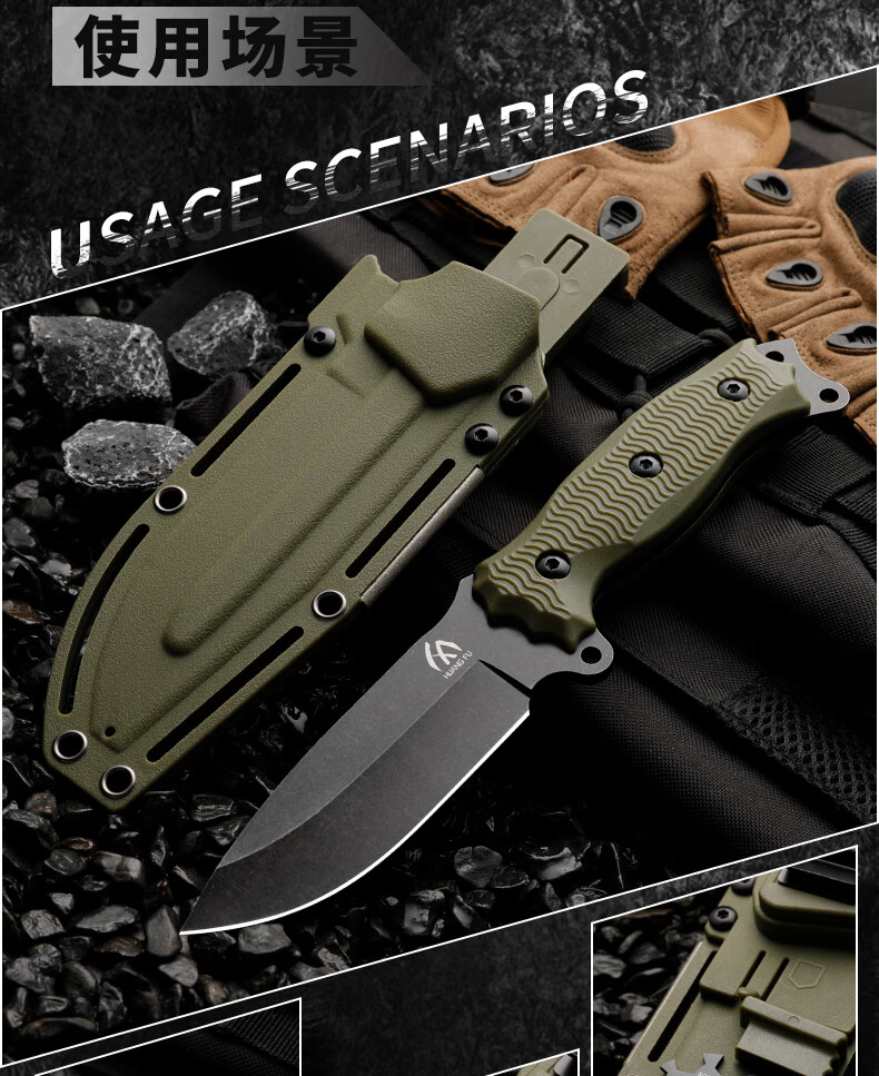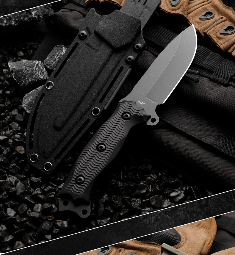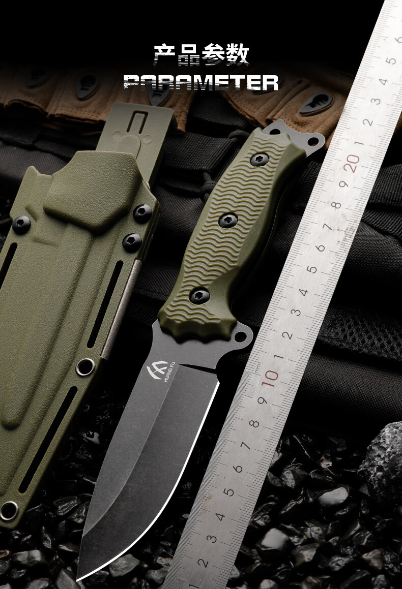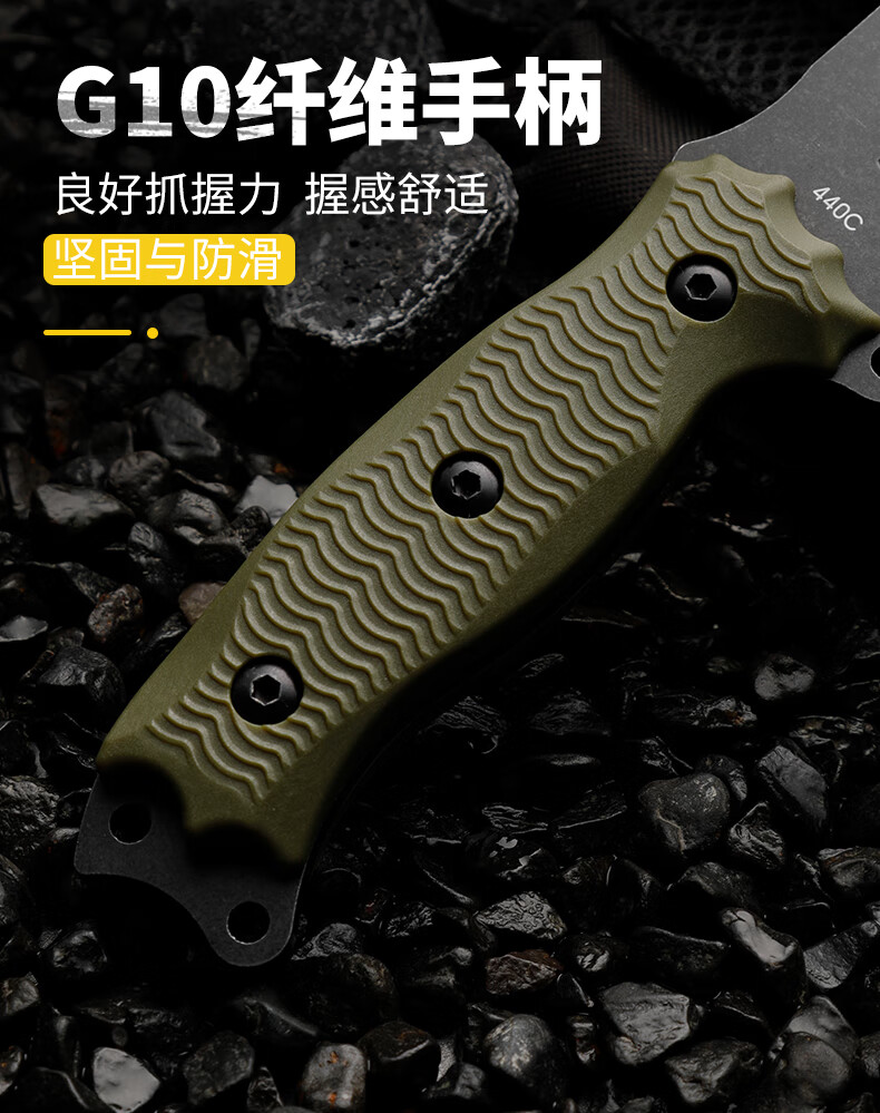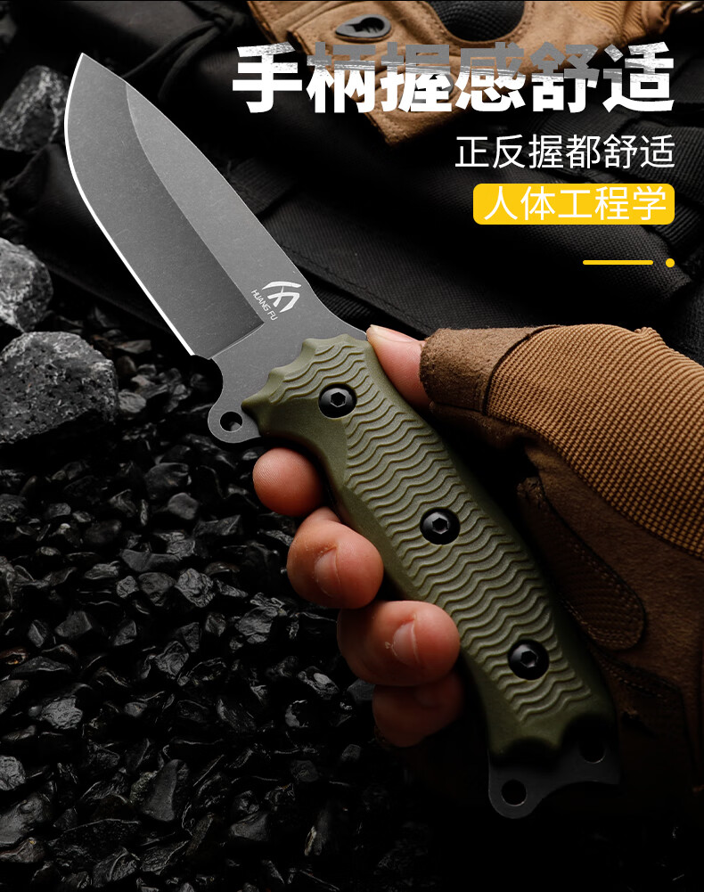 G10手柄一体户外刀具高硬度野外登山露营探险便携防身锋利小刀 黑色