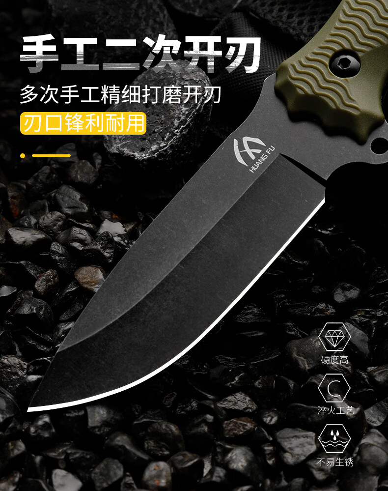 户外小刀露营防身直刀荒野求生锋利直刀战术刀随身求生刀高硬度刀 BG-001【黑色】