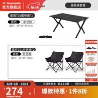 挪客蛋卷桌户外露营轻量化便携折叠桌野营野餐野炊桌椅装备全套一体 【2人出游】黑色90桌+月亮椅*2