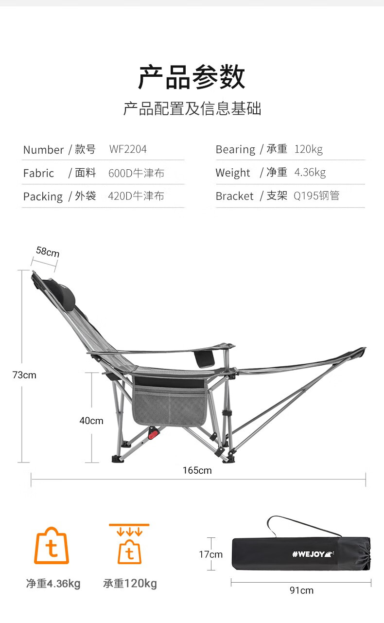 康尔 KingCampWejoy系列折叠床户外露营便携躺椅办公室午休躺椅神器 【躺椅】青色