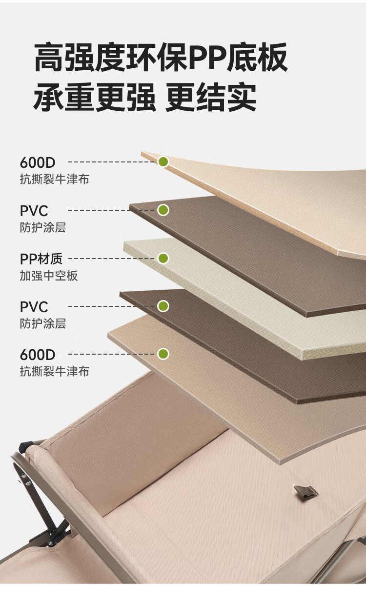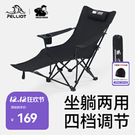 伯希和(Pelliot) 【HIKER系列】户外躺椅便携式折叠露营午休床沙滩懒人椅子 【一秒折叠】曜石黑躺椅
