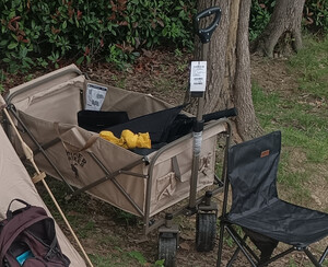 这次威海之行准备露营几次,所以露营车必须备起来,这款露营车做工材质很不错,大轮子厚实但很轻盈,灵活,组装收起都很方便,感觉很好