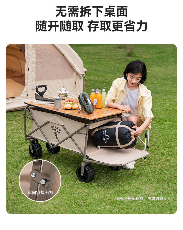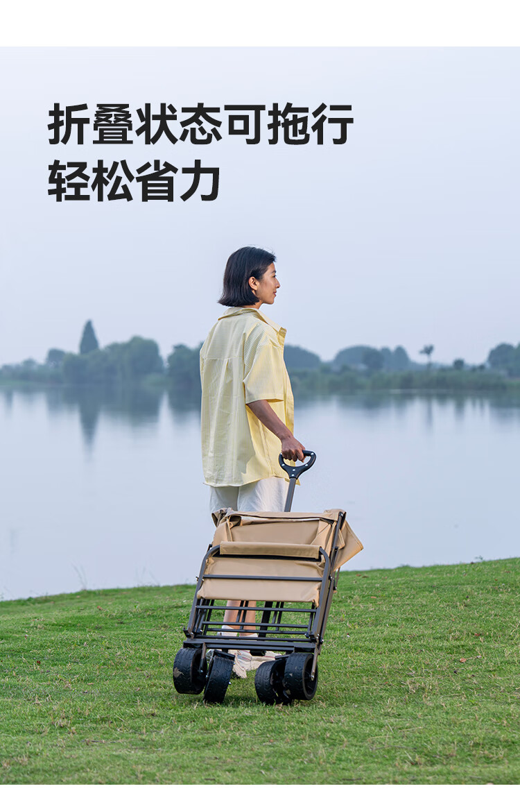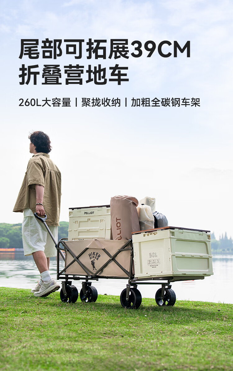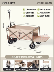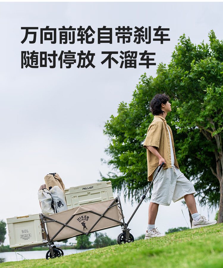 伯希和(Pelliot)户外露营折叠手拉小推车野餐营地车便携摆摊拖车16406041卡其色