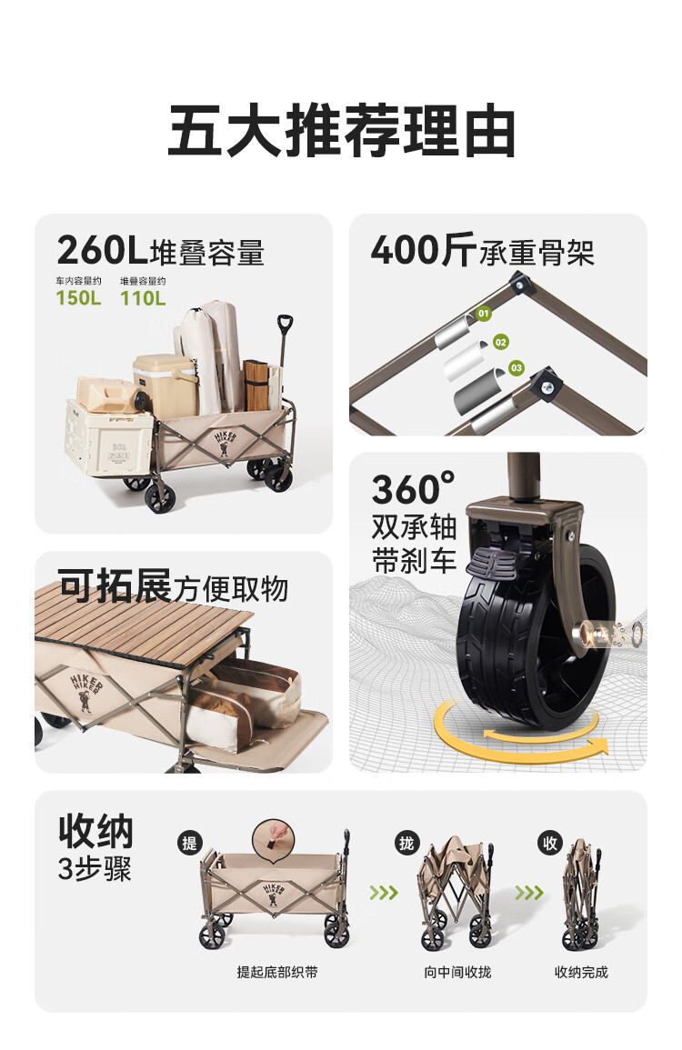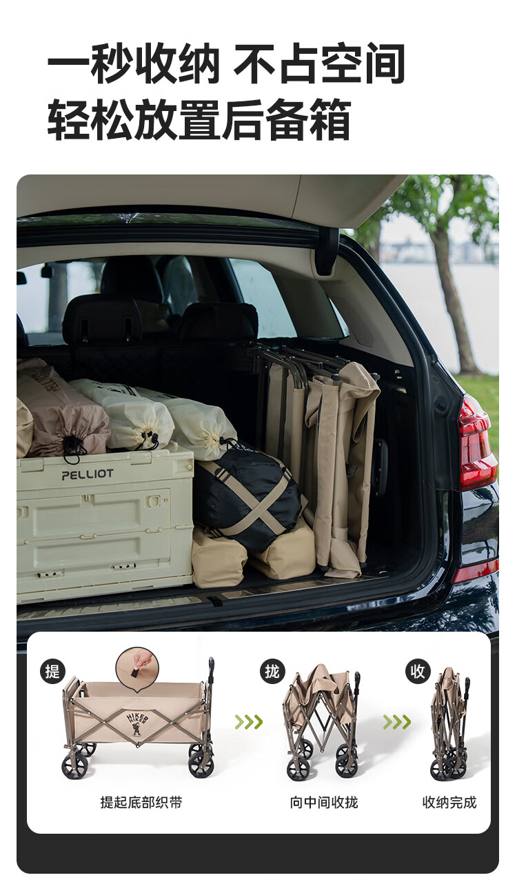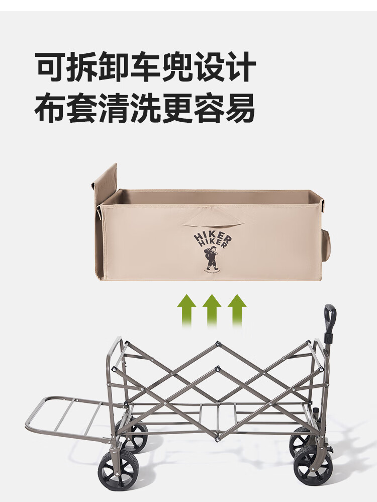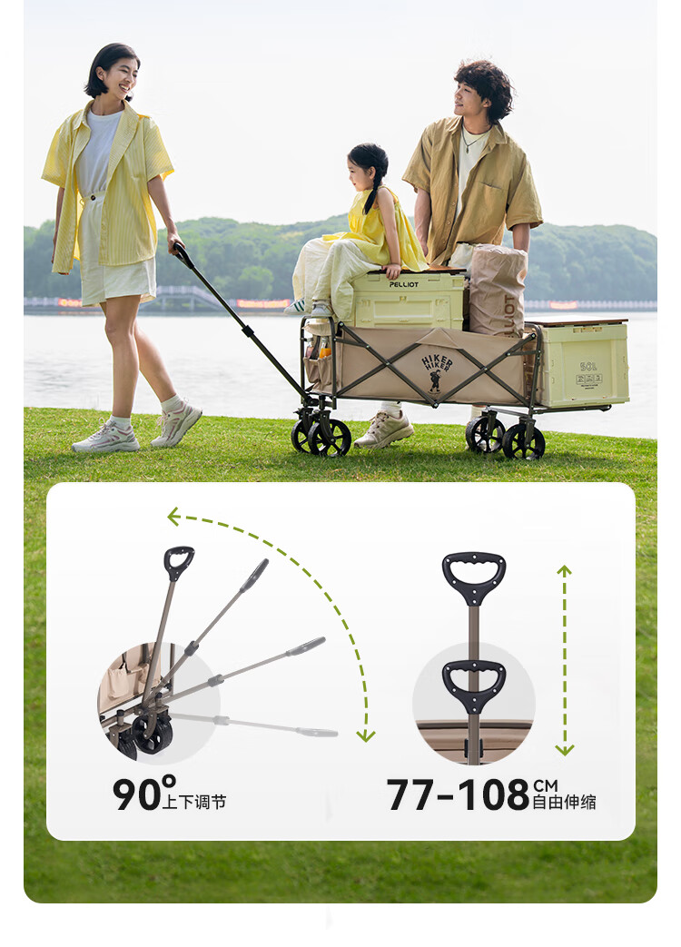 伯希和(Pelliot)户外露营折叠手拉小推车野餐营地车便携摆摊拖车16406041卡其色