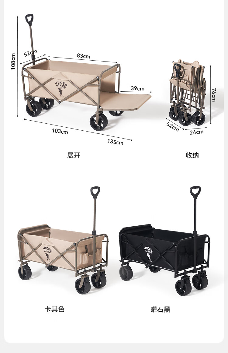 在伯希和买了一套装备五一全家露营用,设计很不错,实用又好看,非常能装载,车轮宽大,拖起来不费力,折叠占用空间也不大,很喜欢。