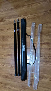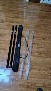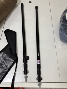 两根沉甸甸的支撑杆,后面帐篷的门帘就可以利用起来,很有分量,螺旋锁紧松开的设计也是不错的,留意了很久,双十一活动拿下,质量挺不错,赞一个……