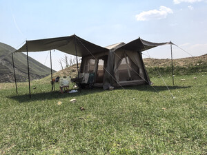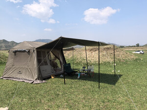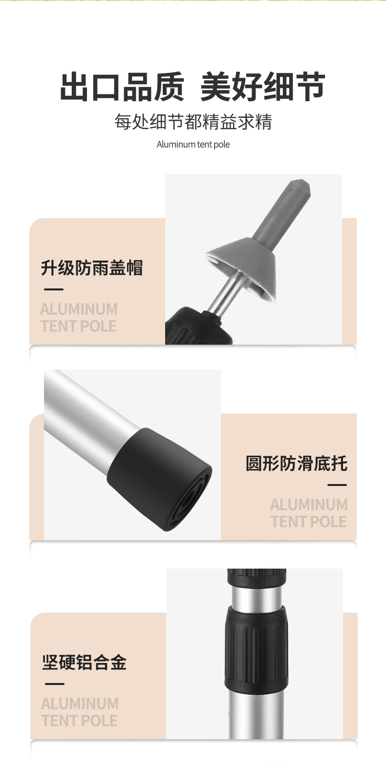 买了这个就是可自由调节的三节式的这种天幕杆,原来那个送的天幕杆儿就是帐篷自带的天幕杆儿太矮了,所以自己我买的这个价格不贵,然后质量很好,很棒,比较满意。性价比也行。