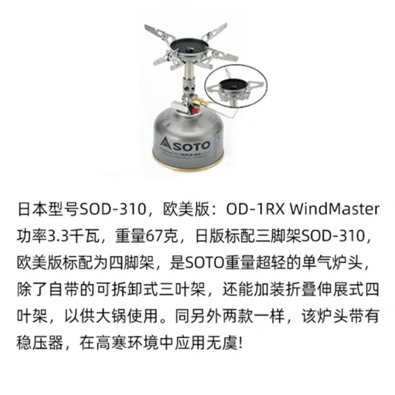 赛多日本进口风神防风稳压登山炉 轻耐低温带稳压器高功率 SOD-310炉头+三角支架