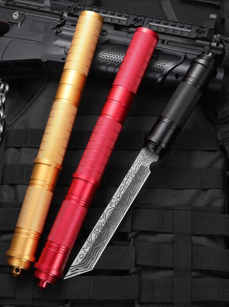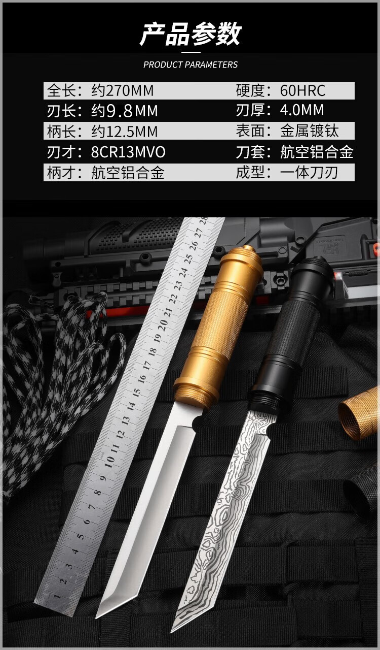 KOSK雍訫多功能铝合金手柄便携随身防身小刀高硬度户外刀氚气刀棍中刀 黑色 60°以下 x 7cm x 9.8cm