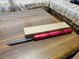 货物准时收到,包装防护很好,没有污损。本来下单选了金黄色,店家联系我说缺货,就换了红色,也不错,做工很好,颜色很正,尺寸加工精度不错,配合严丝合缝。刀子稍显单薄,但是效果很好。