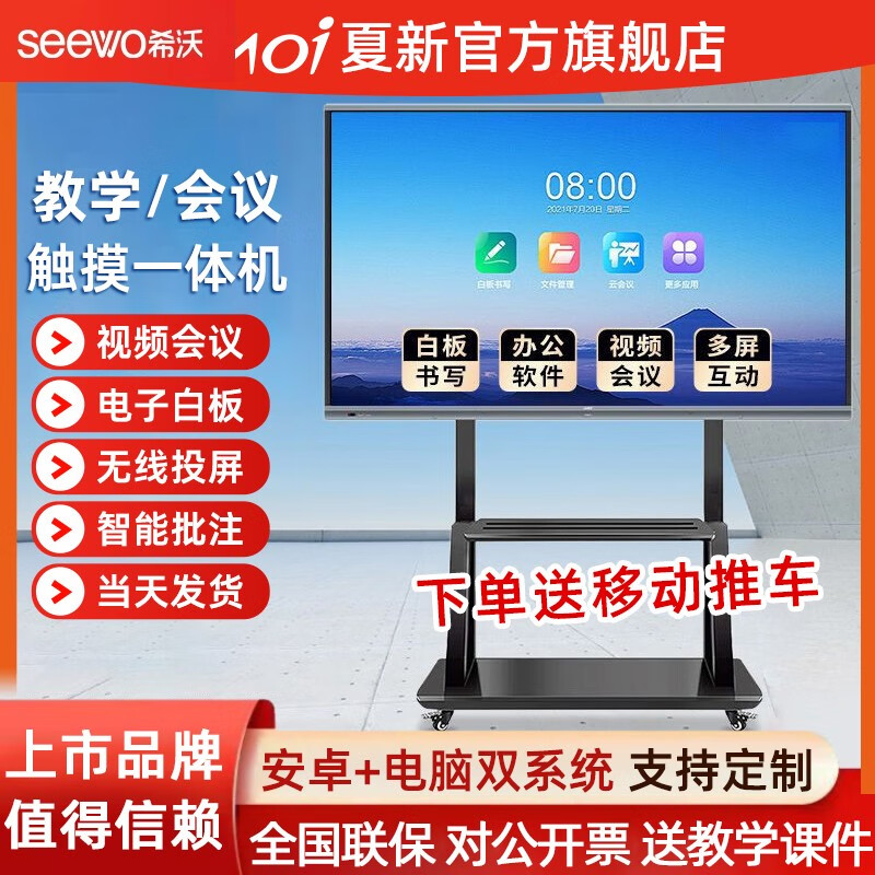 希沃seewo会议平板一体机办公教学多媒体触控屏电子白板100寸触 安卓+电脑双系统[i7/8+256G]高配 LED100夏新[移动推车+触控笔+教