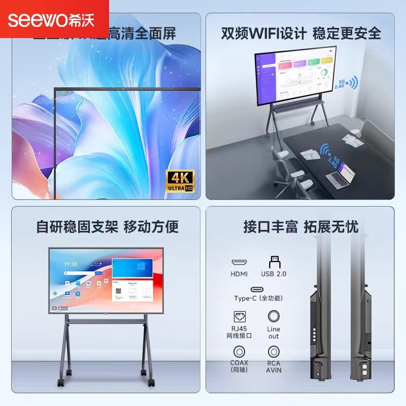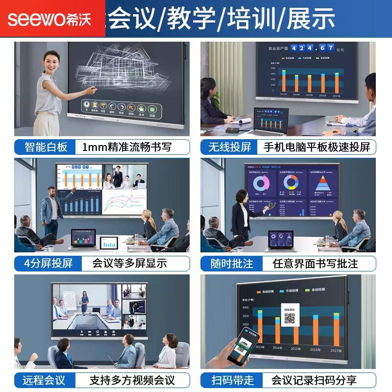 希沃seewo希沃教学触摸一体机白板智慧黑板65寸多媒体会议培训75/86寸交互平板触屏教学一体机旗舰店 86英寸 i7+8g+256g+ST33移动支架+投屏套餐