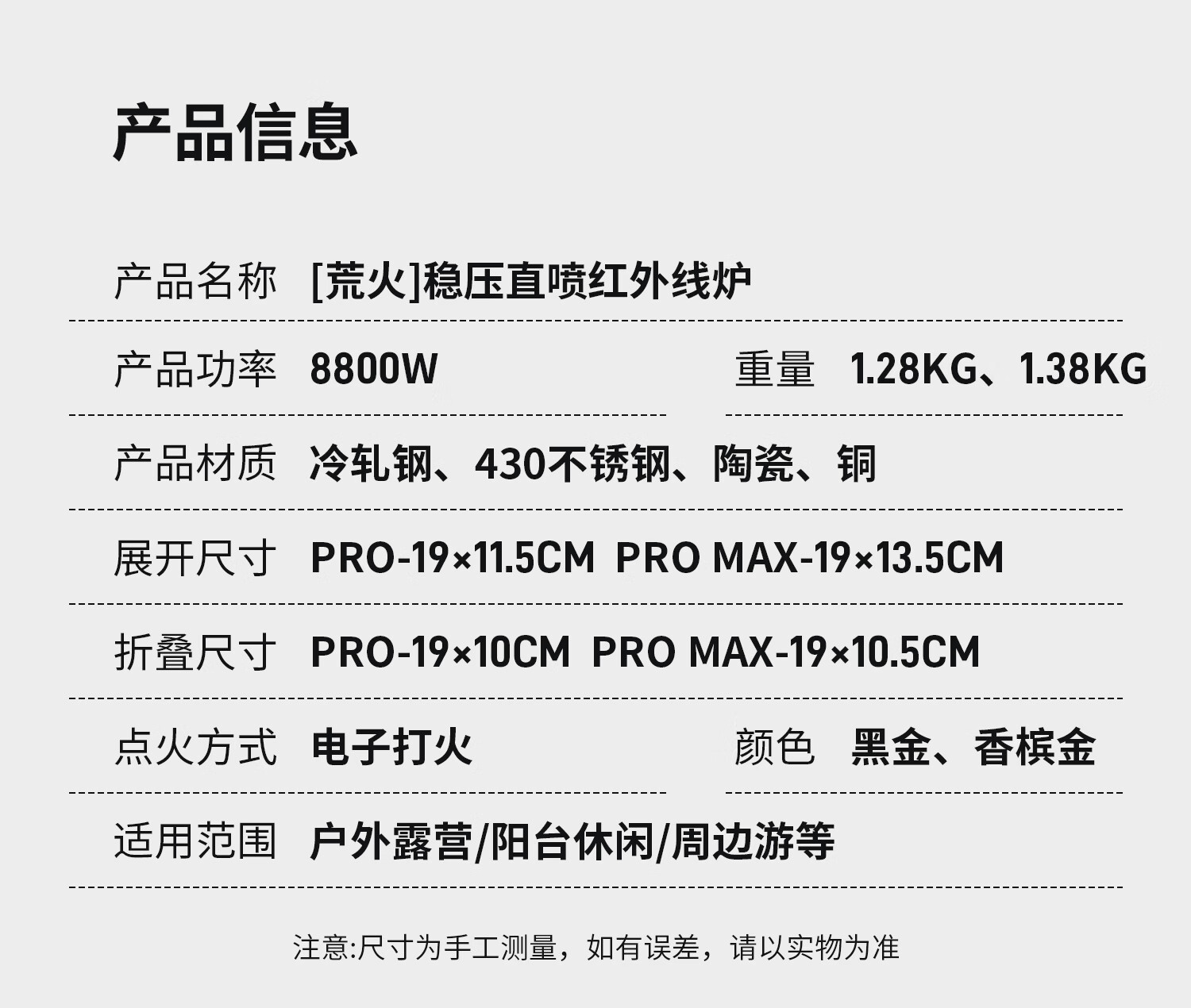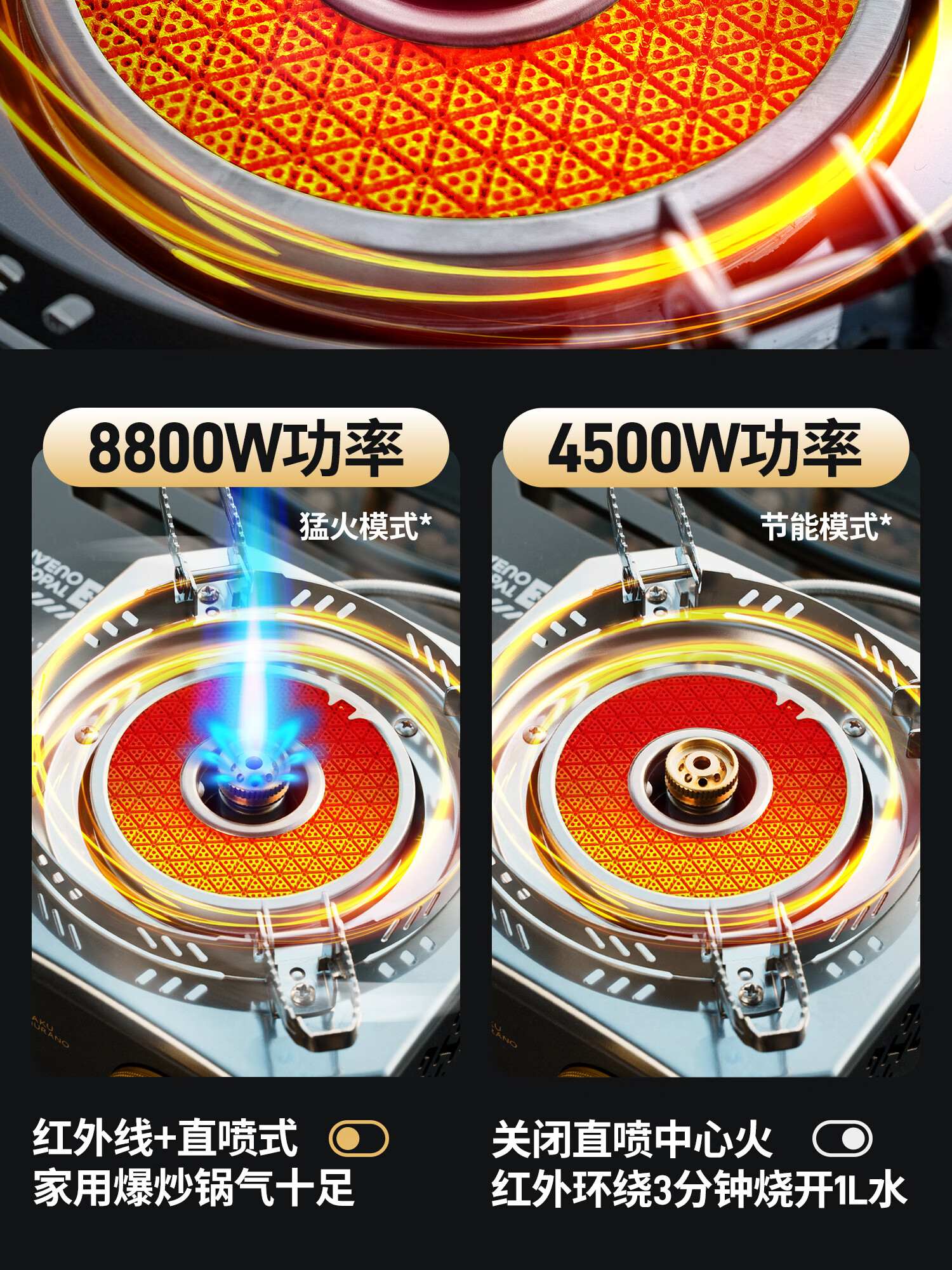 炉子质量挺不错,有猛火模式也有红外模式,节能省气,操作方便,也够安全,气罐也耐烧。…