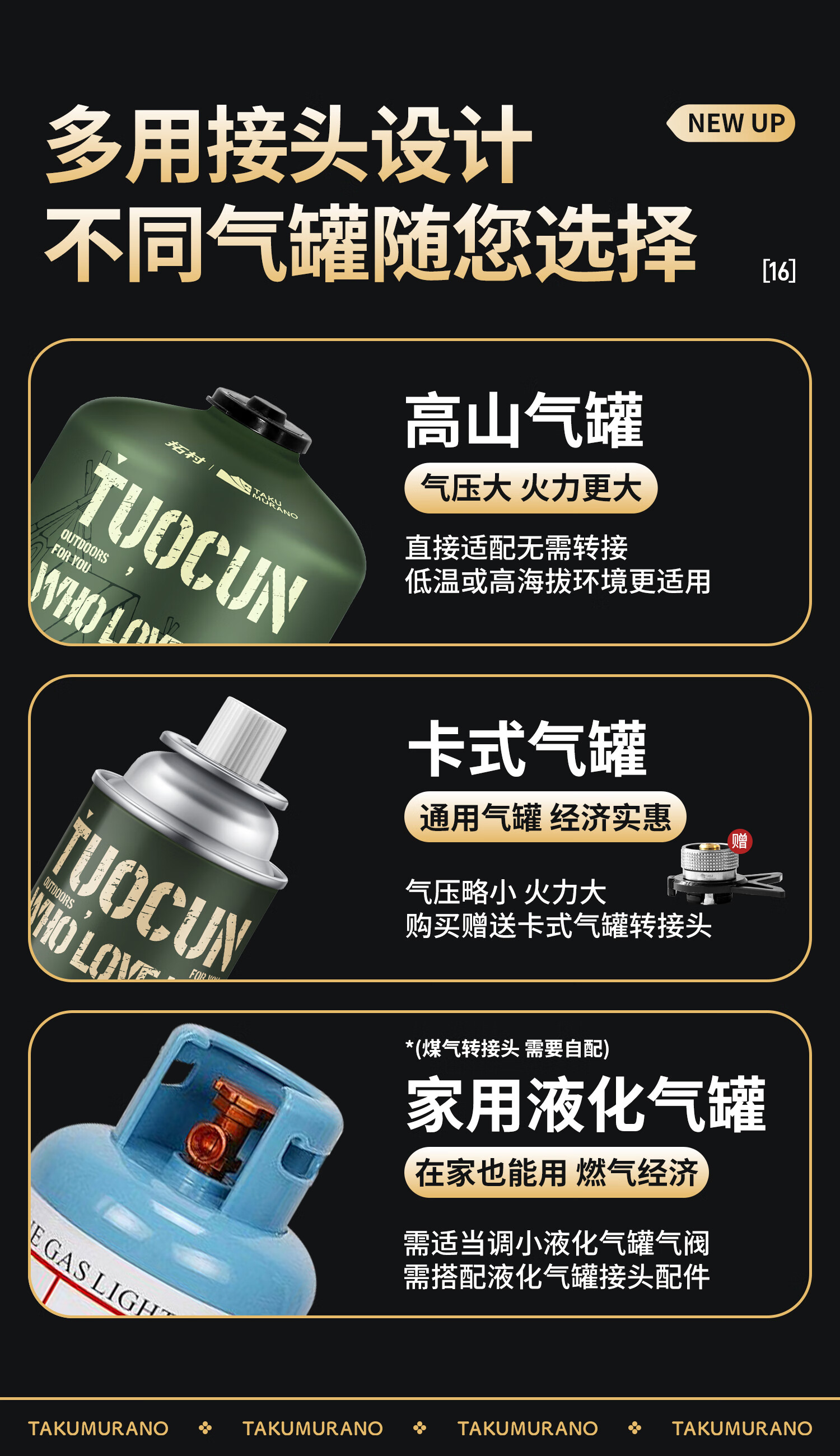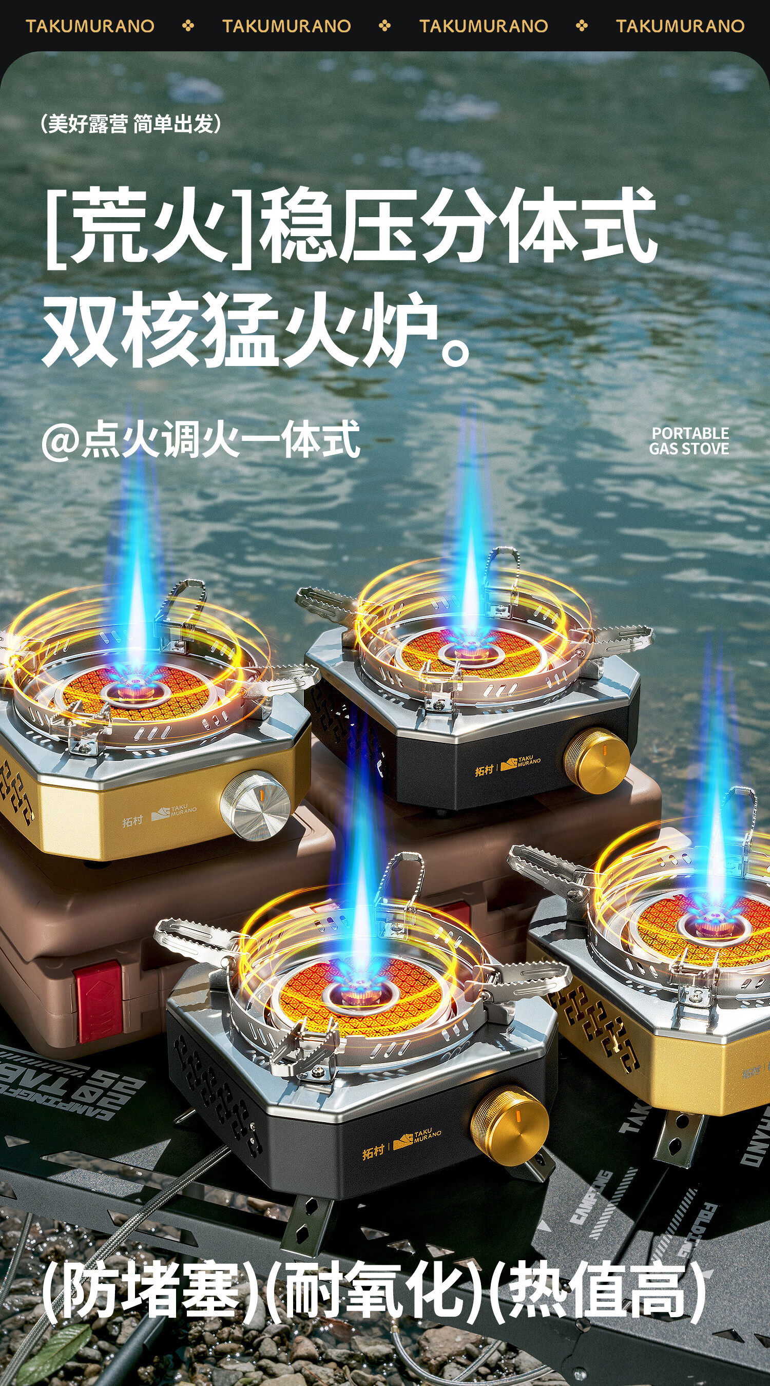 拓村户外七星猛火炉灶炉具瓦斯煤气高山露营野餐野外炊具露营装备 超级套餐